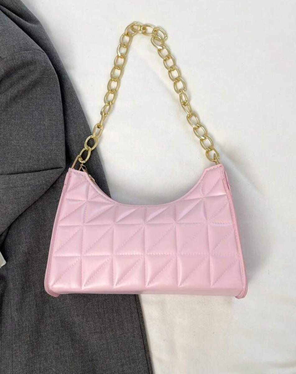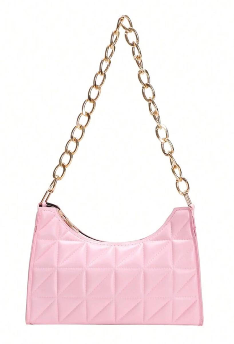 Cameo Pink PU Faux Leather Handbag Purse for Women w/Gold Chain Strap & Zipper Closure - Stylish & Convenient Shoulder Bag Purse