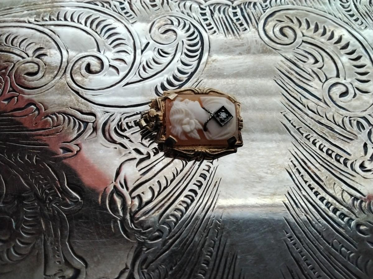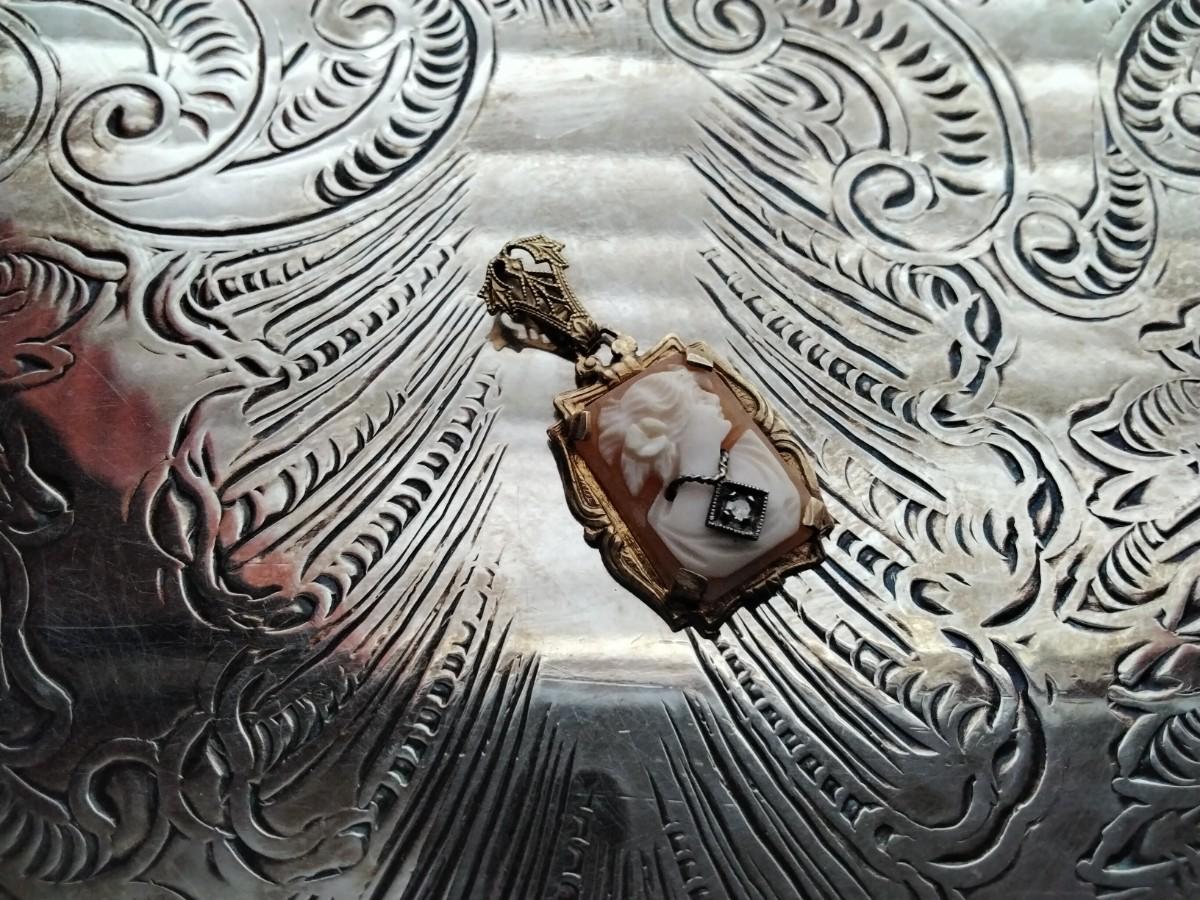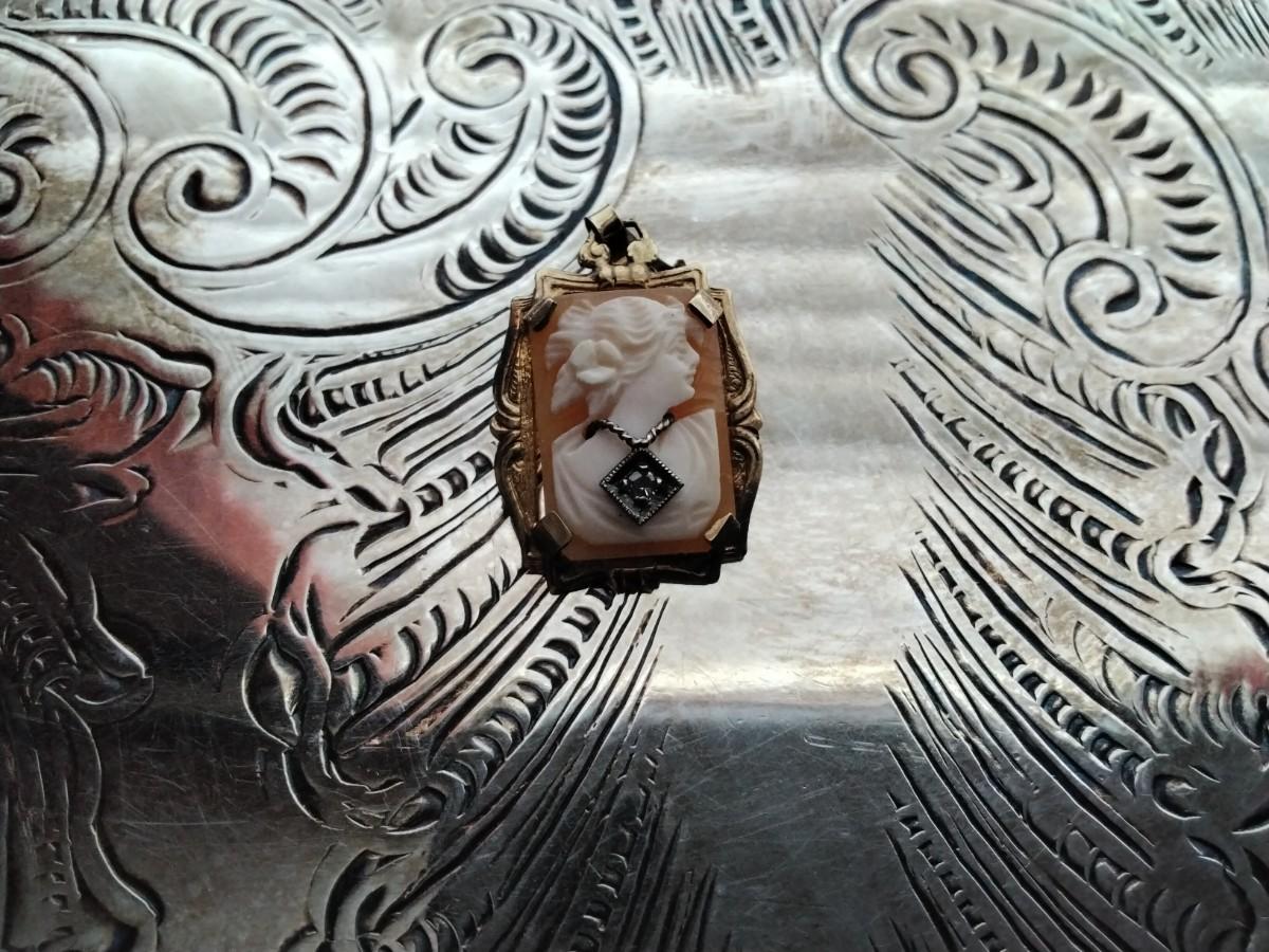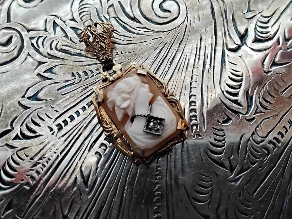Absolutely Gorgeous 14k Diamond Habille Cameo 1"x .5"