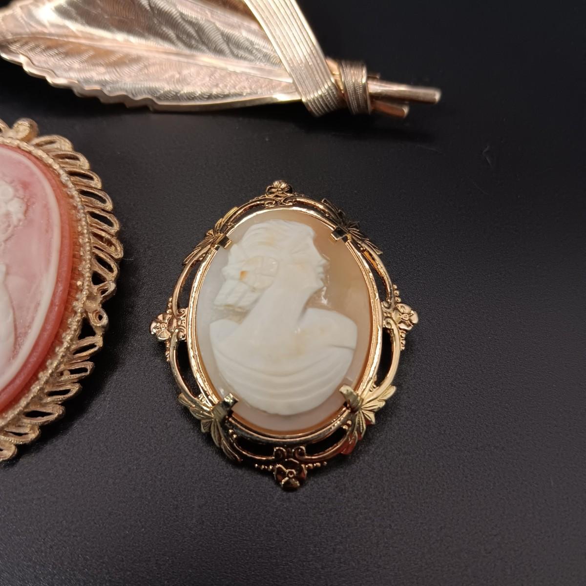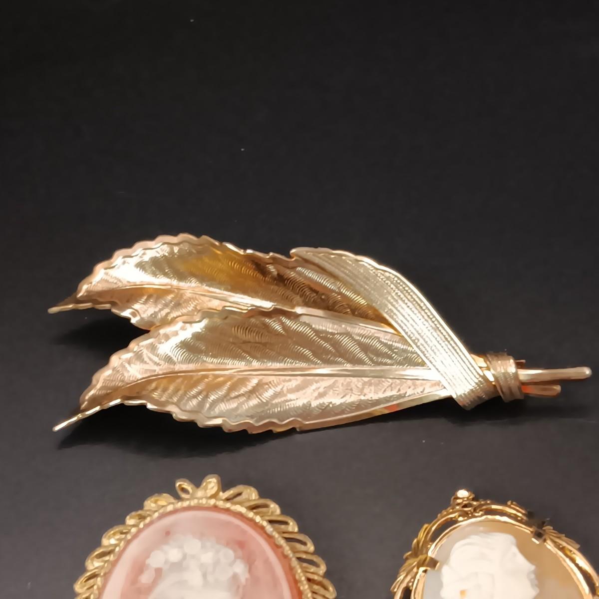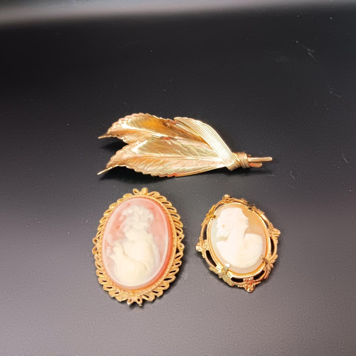 CAMEOS AND GOLD TONE LEAF BROOCHES
