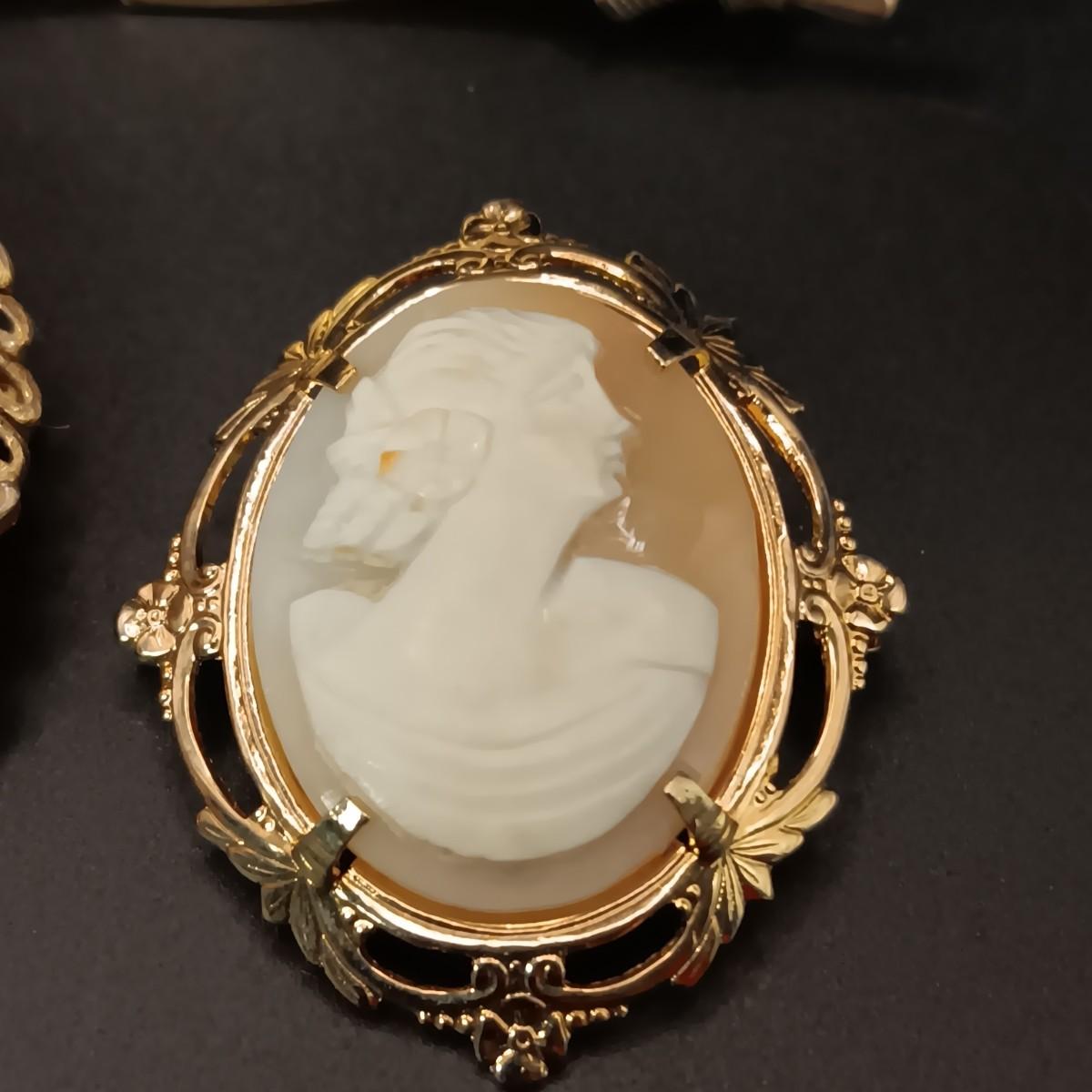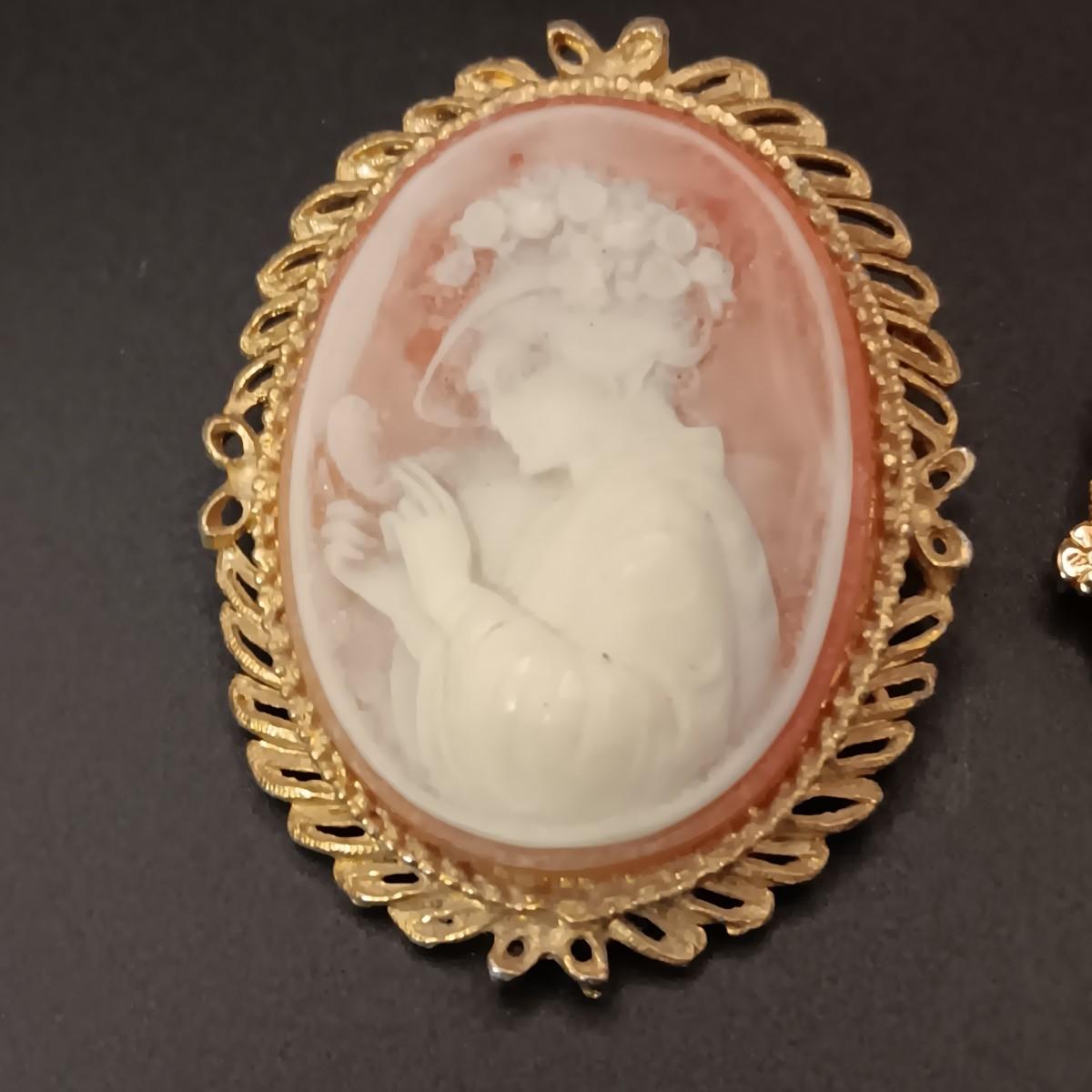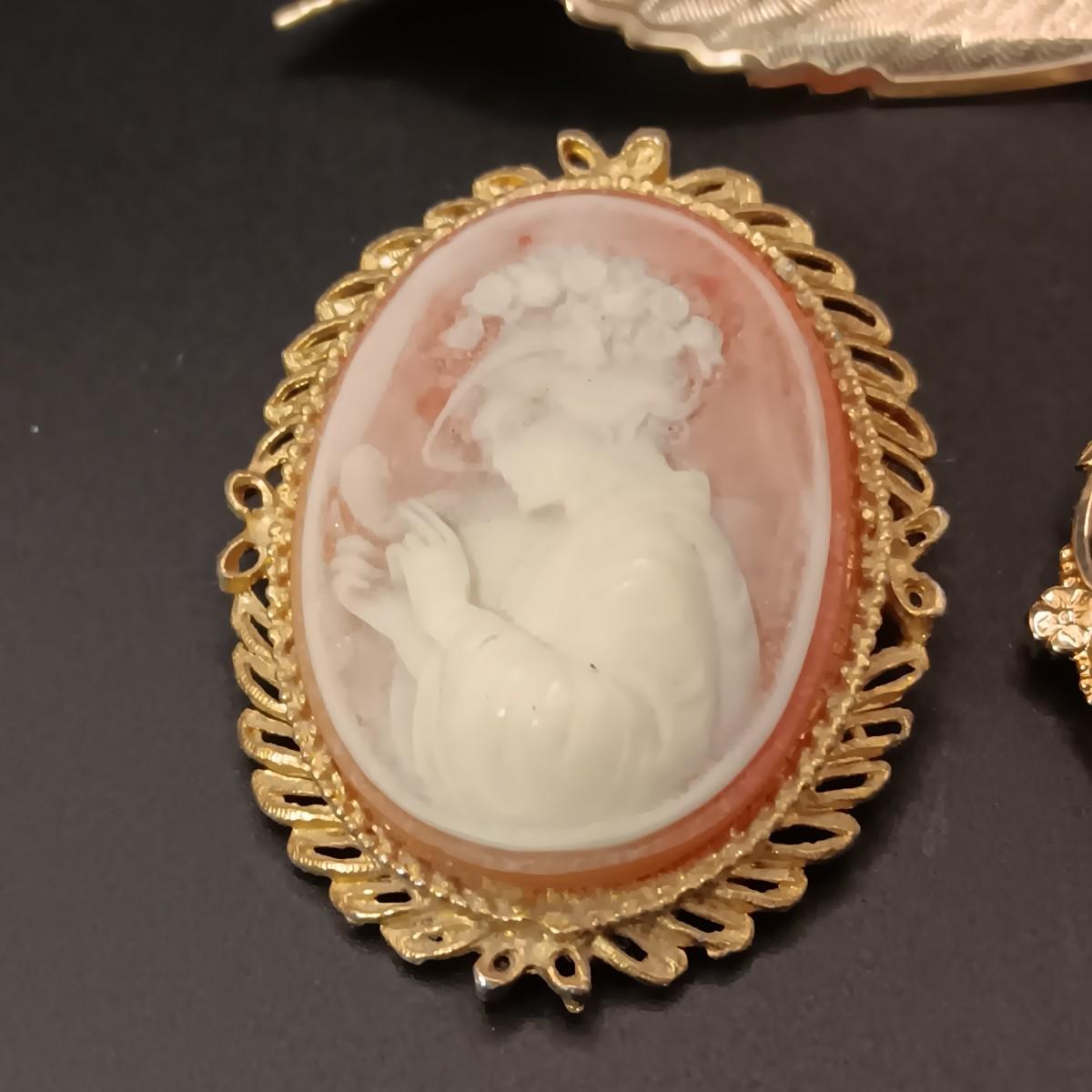 CAMEOS AND GOLD TONE LEAF BROOCHES