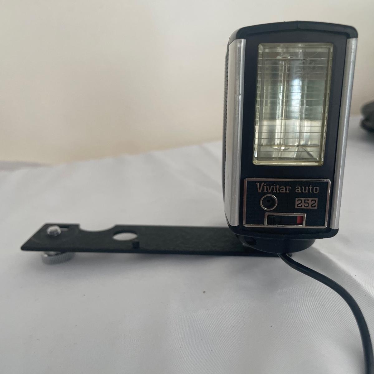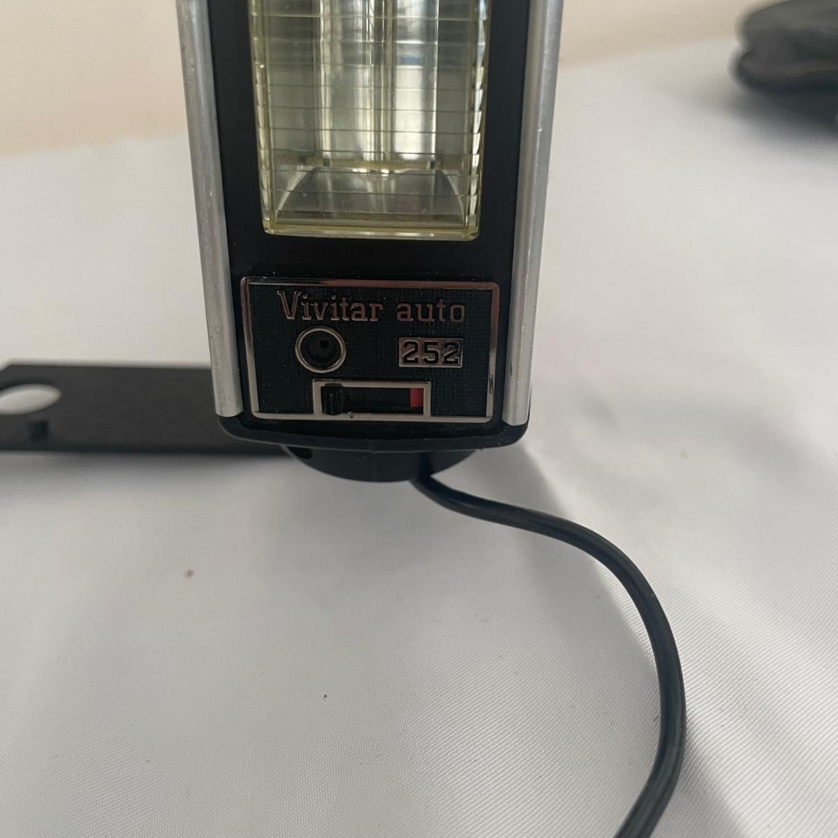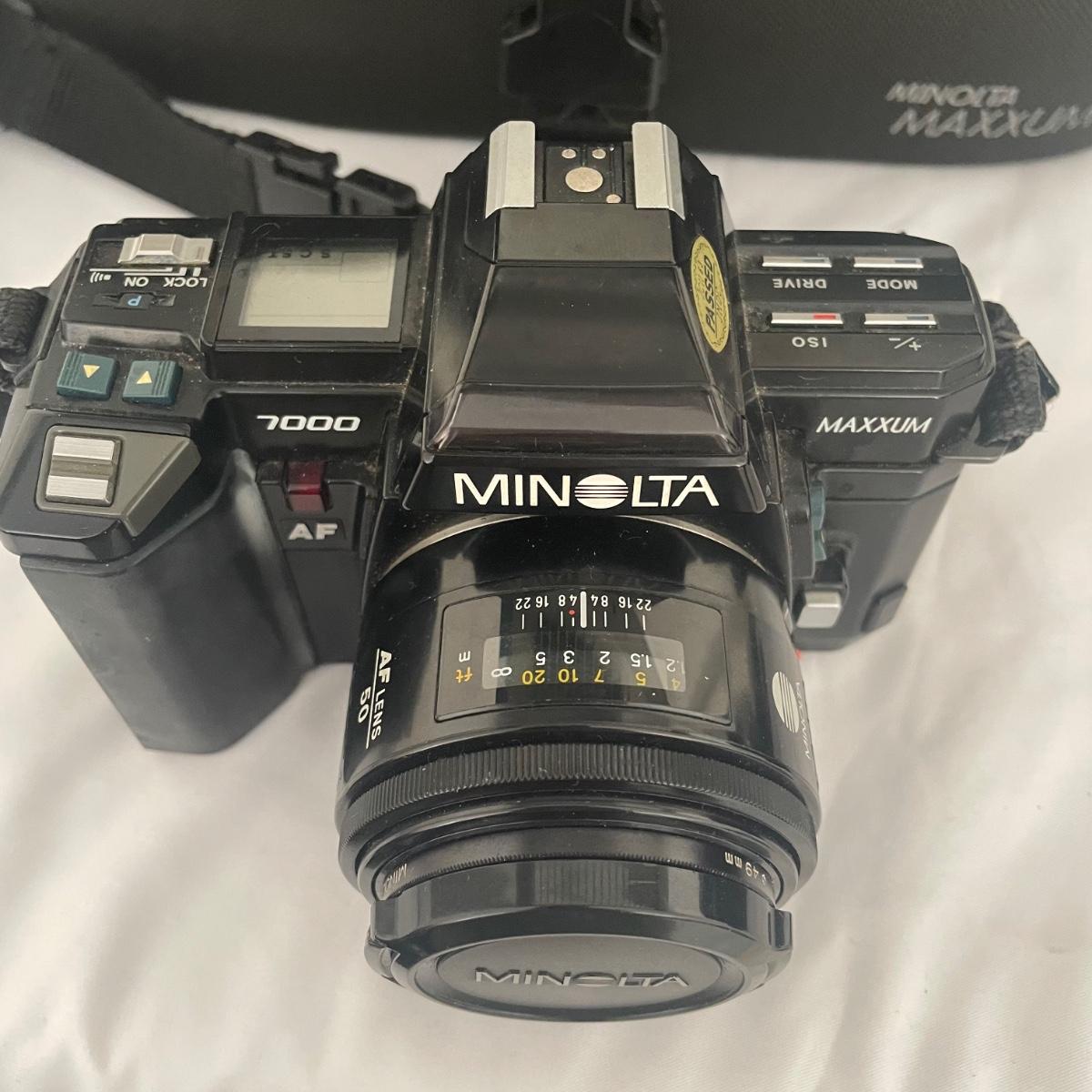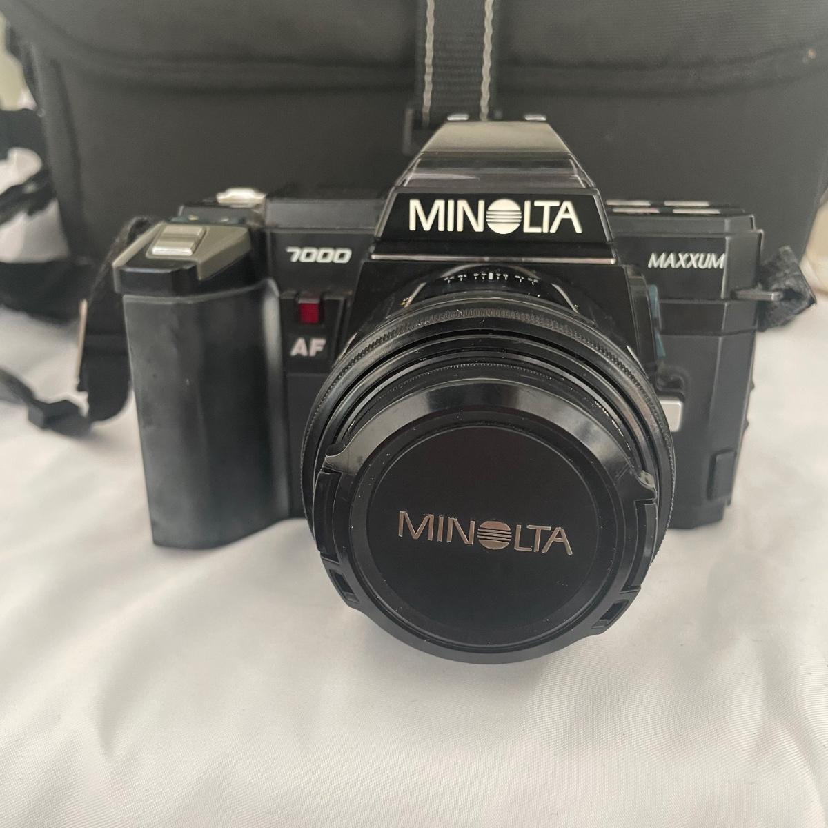 Lot includes Minolta Maxxum 7000, Minolta 100-200 lens and 2800 flash, Vivitar 252 flash, Rollei 35 mm camera, Bell Howell 35 mm camera, case and more. Cameras were not tested.