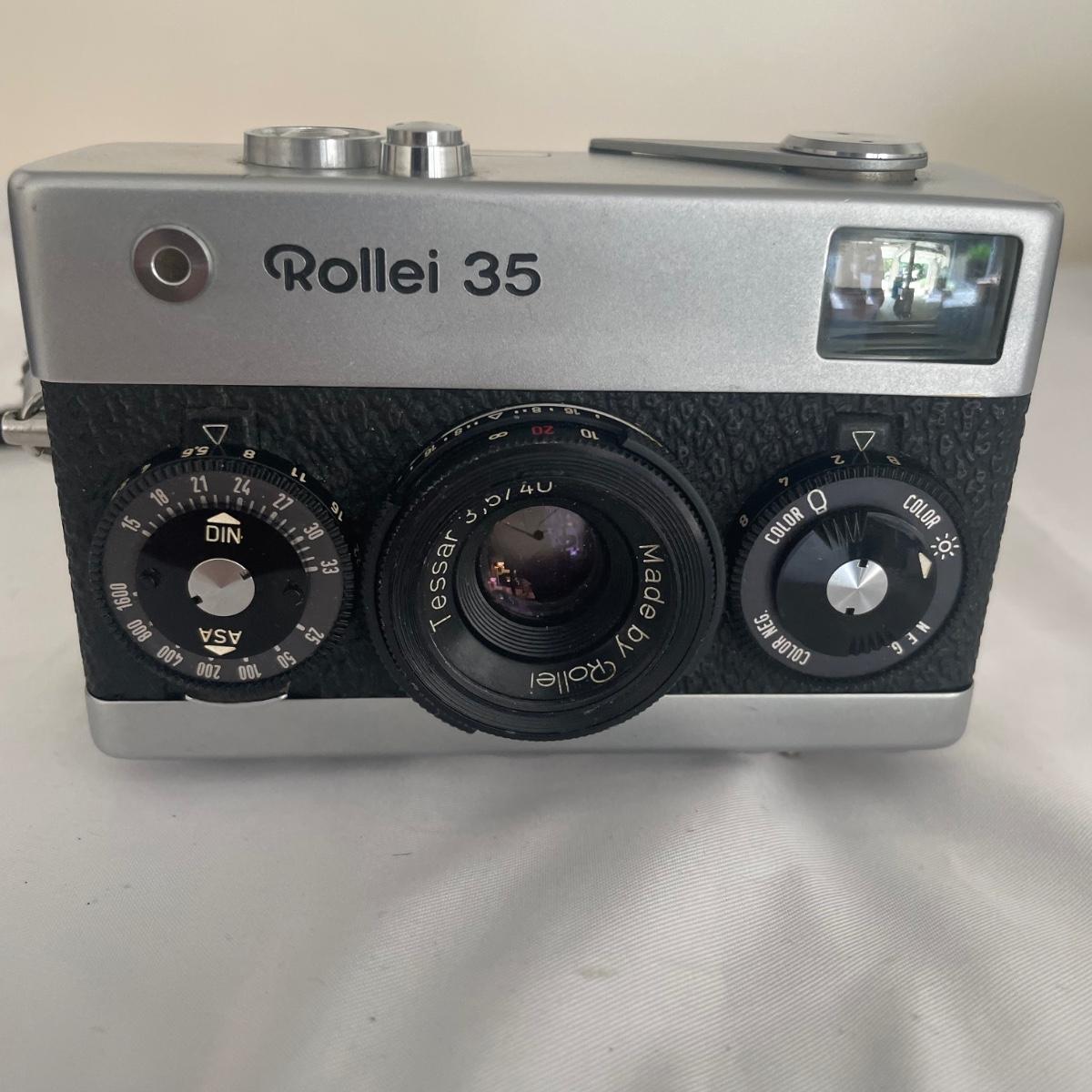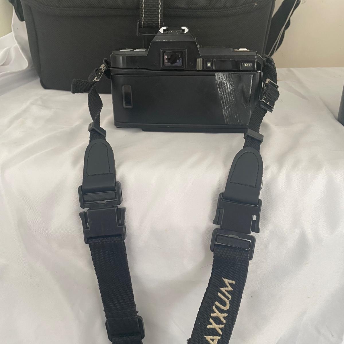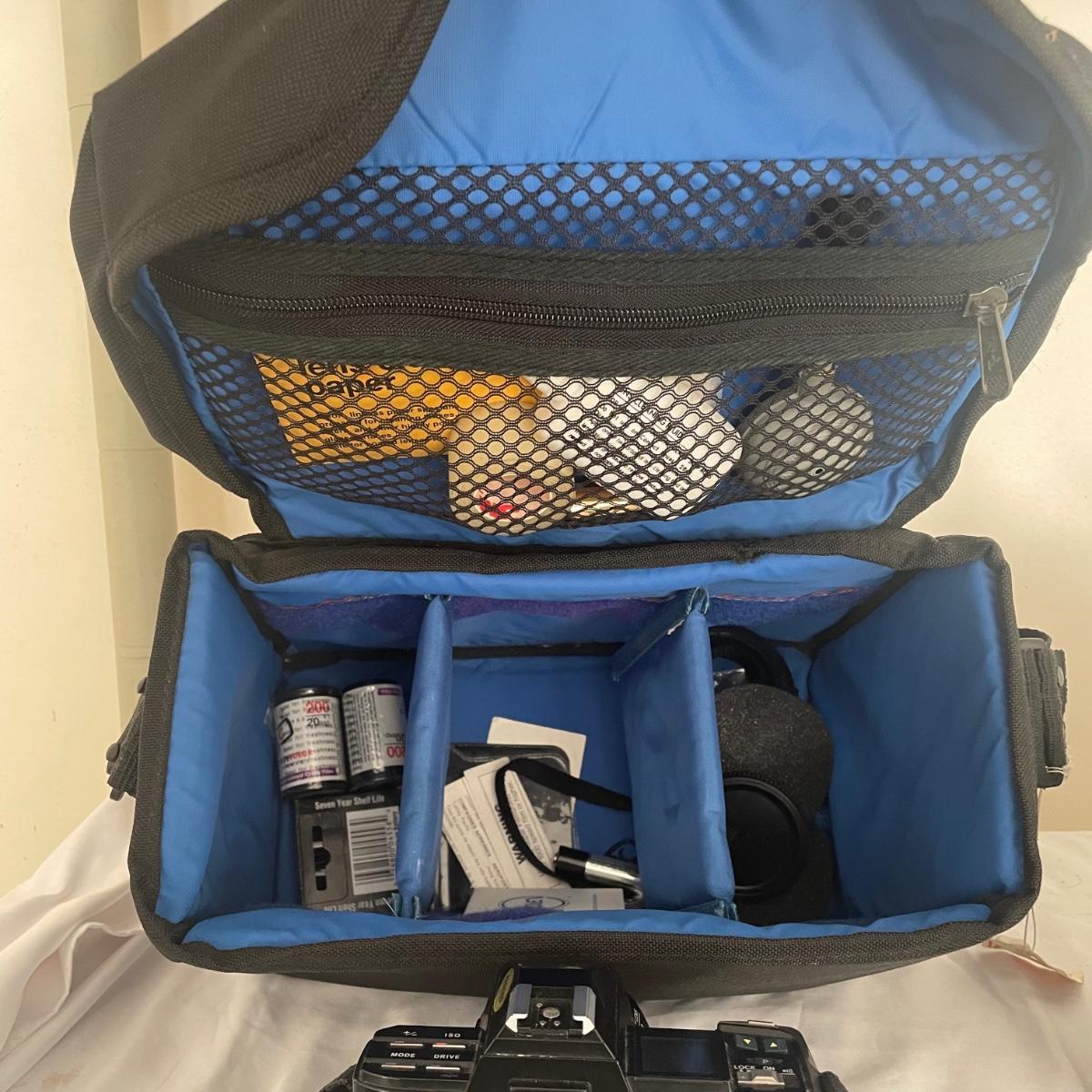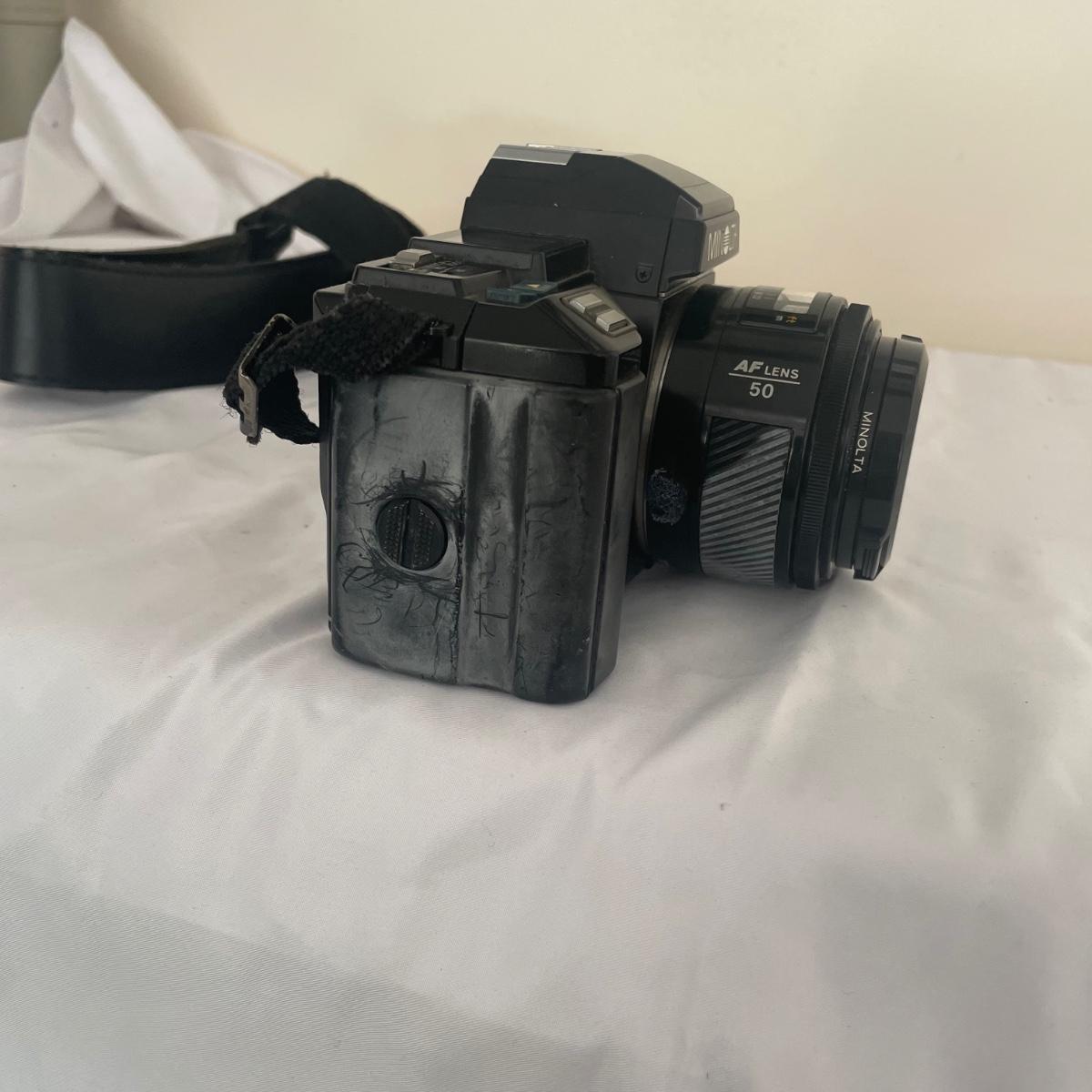 Lot includes Minolta Maxxum 7000, Minolta 100-200 lens and 2800 flash, Vivitar 252 flash, Rollei 35 mm camera, Bell Howell 35 mm camera, case and more. Cameras were not tested.