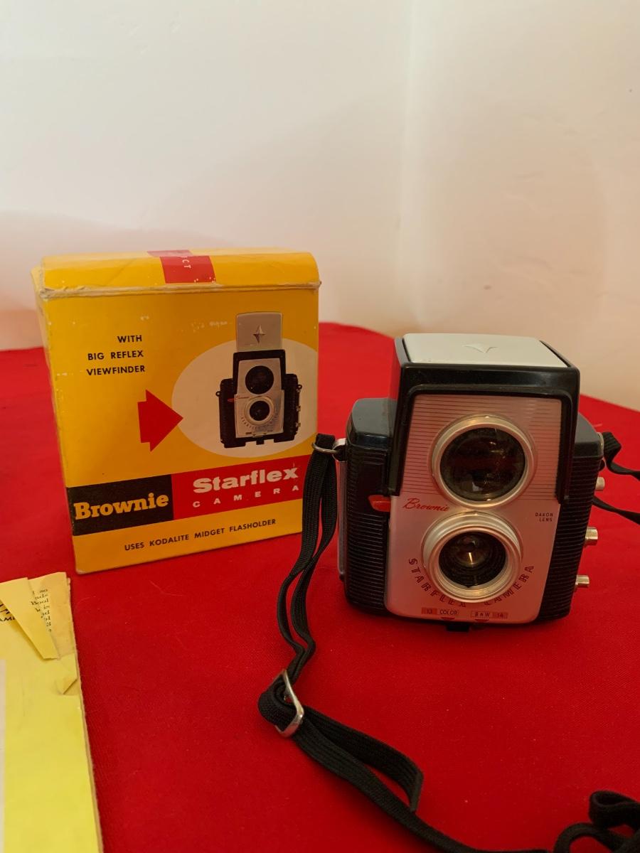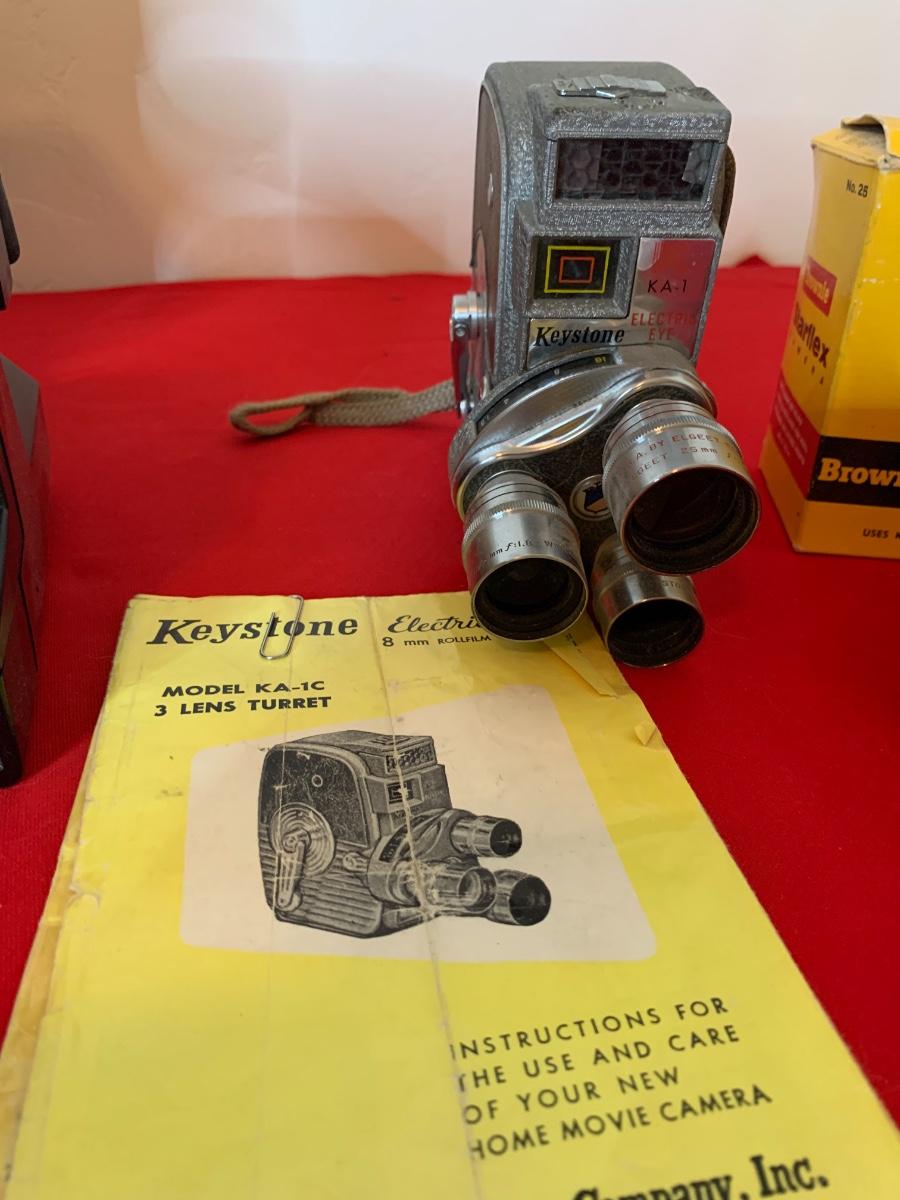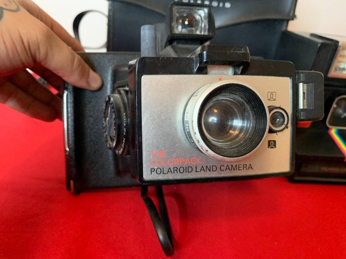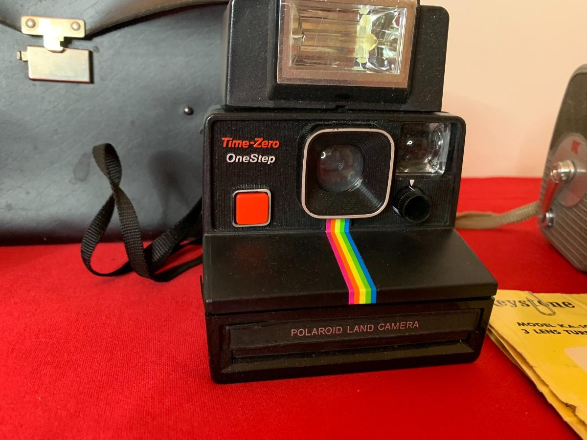 Lot includes various vintage cameras including Polaroid land cameras, Keystone KA-1C, Kodak Brownie Star Flex, Taron, and a Minolta Filter.