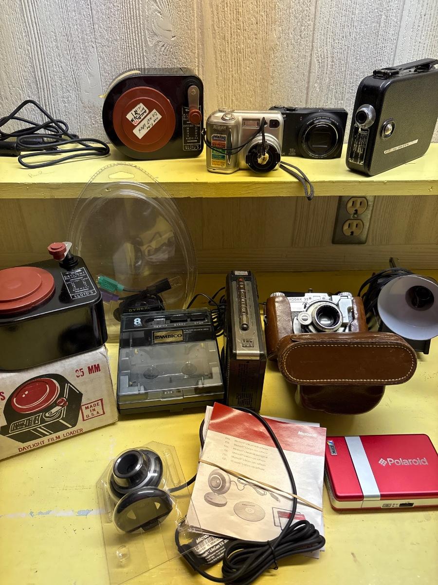 Two film motors, Nikon cool pics S 9140 300, Kodak 35,Cine Kodak Eight movie camera, etc