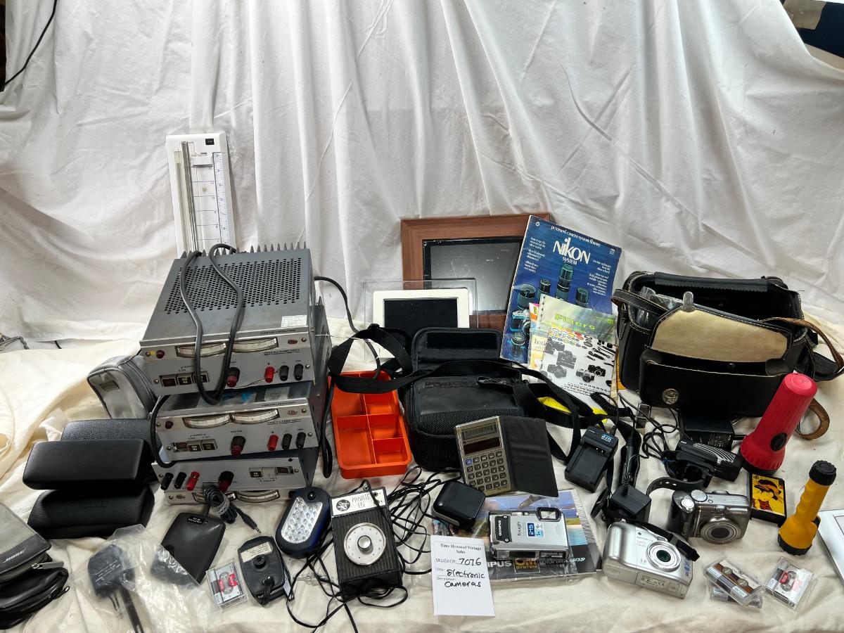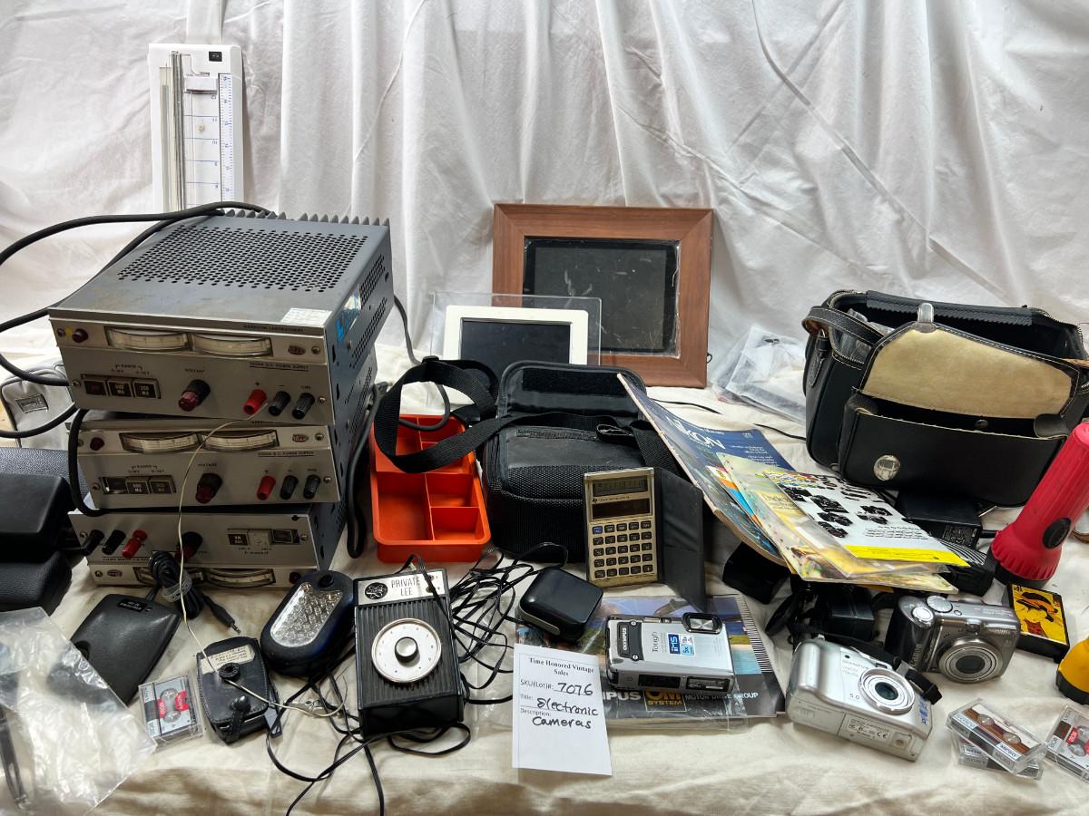 3 vintage meters untested, cameras, cases, digital frames, , paper cutter