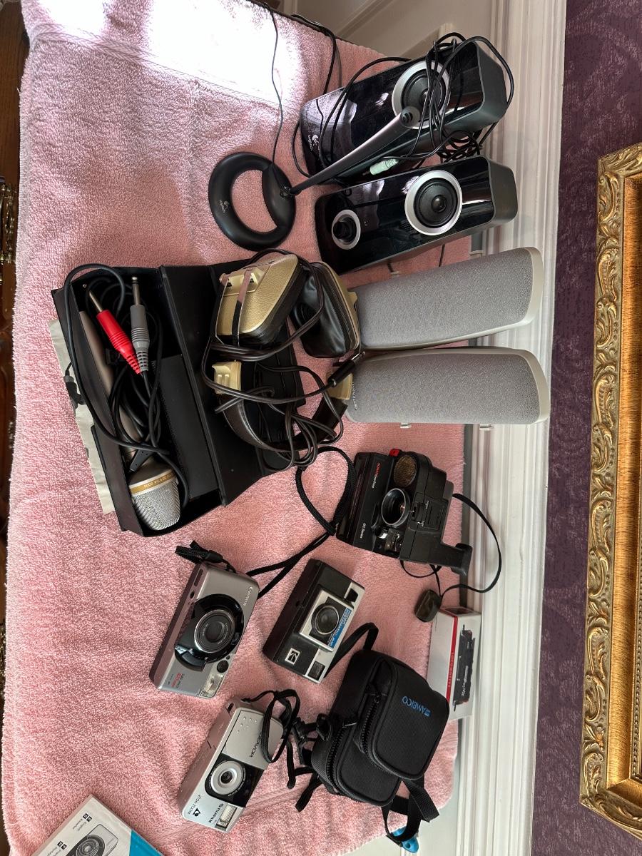 Camersa, speakers, cases as pictured