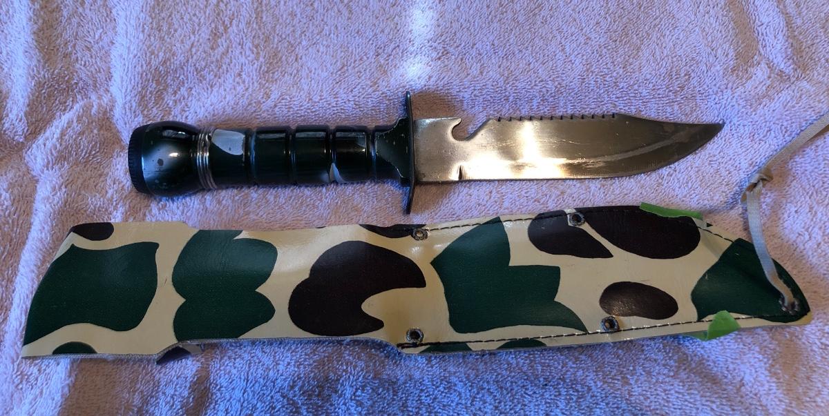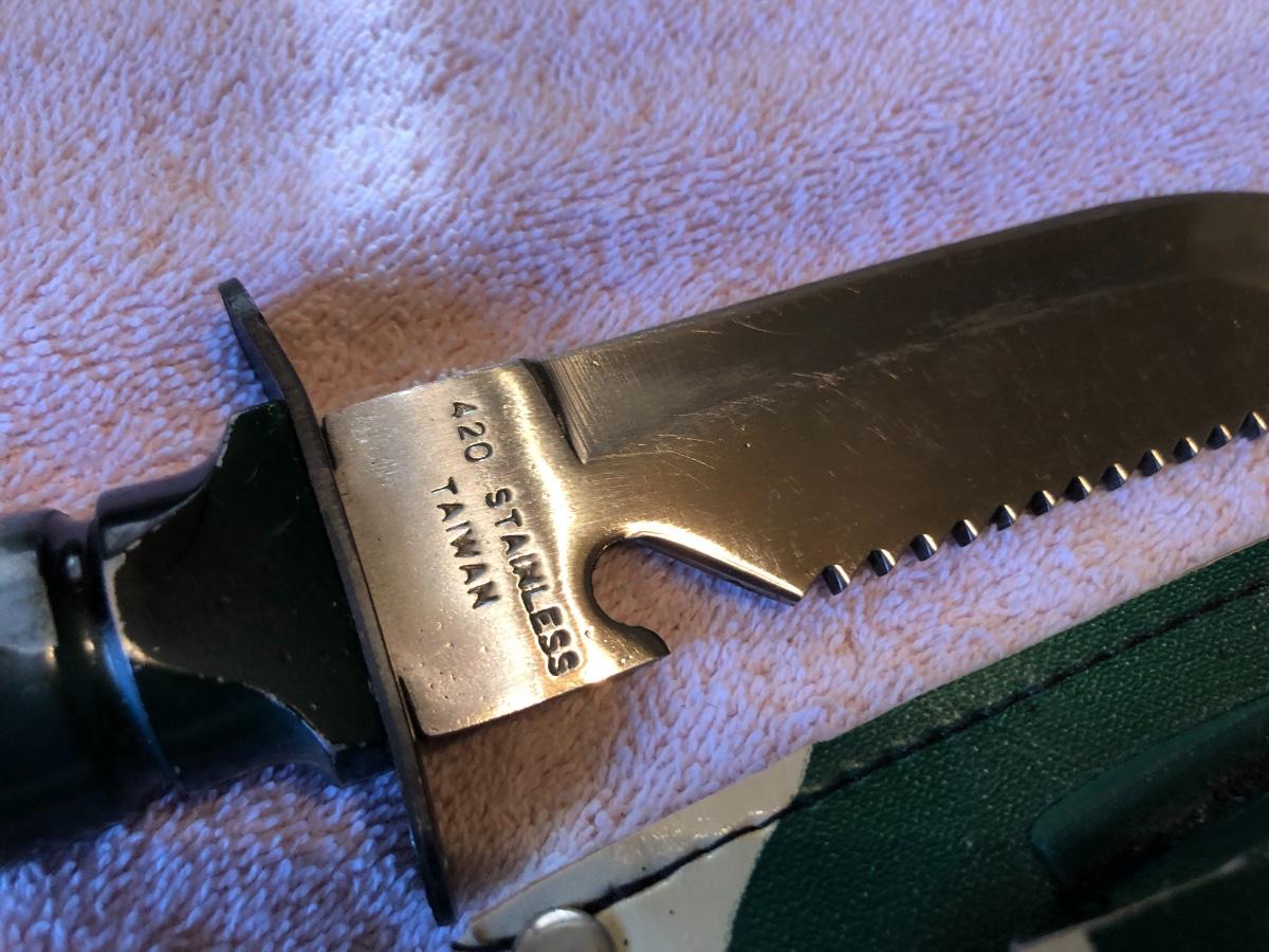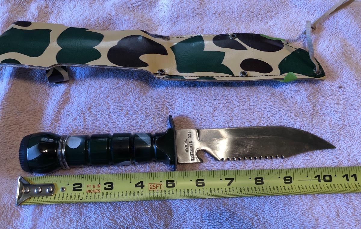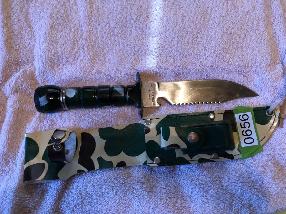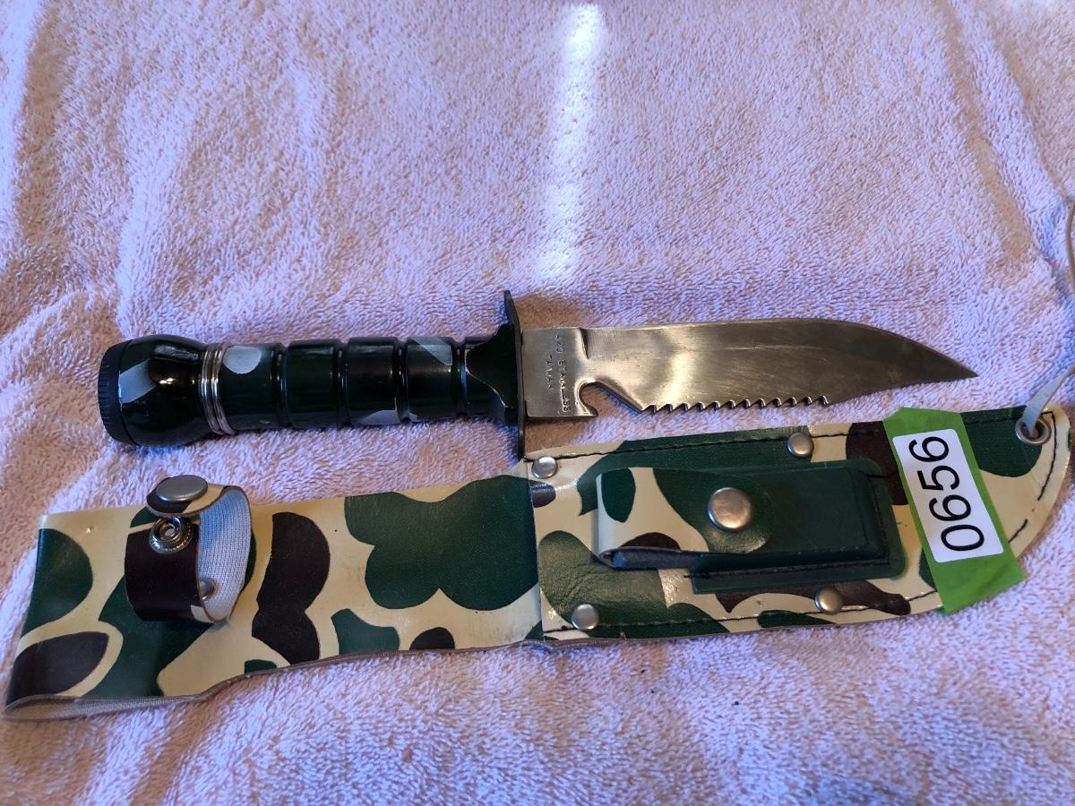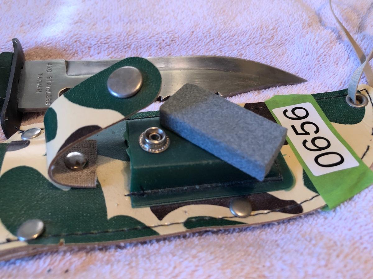 Camouflage 420 Stainless Knife w/stone Taiwan. Lot #0656