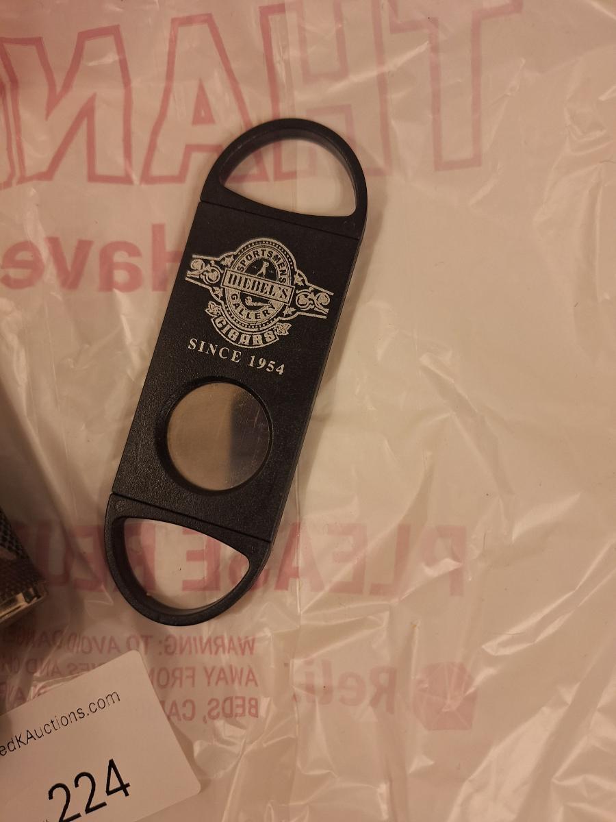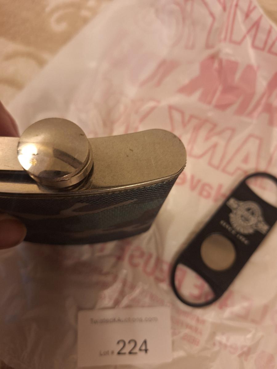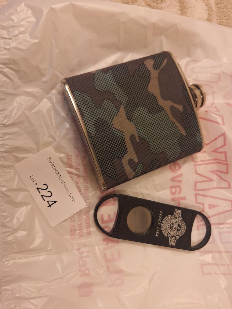 camo covered stainless steel flask and cigar cutter