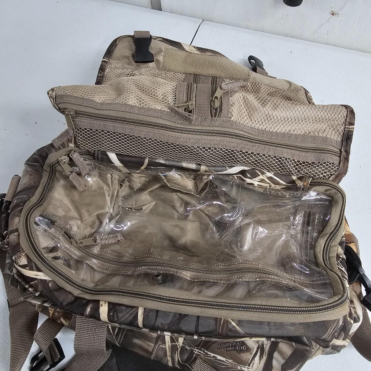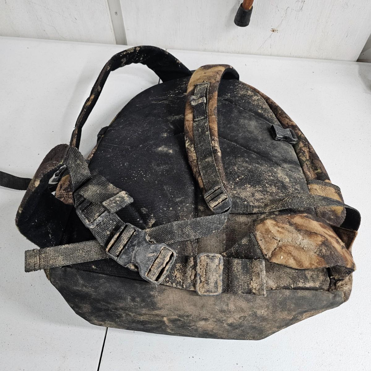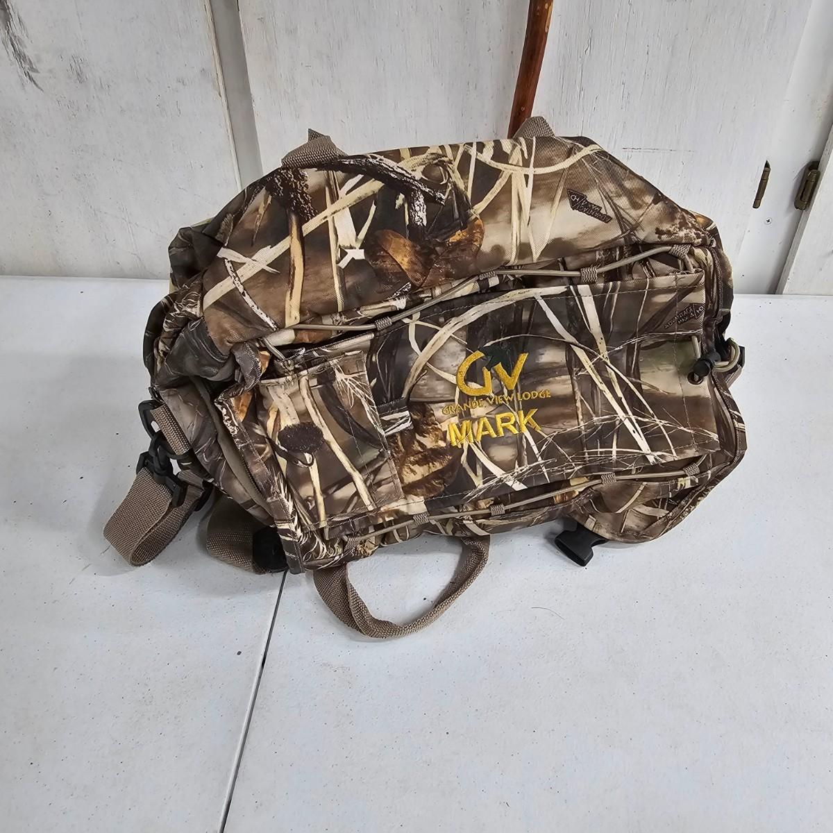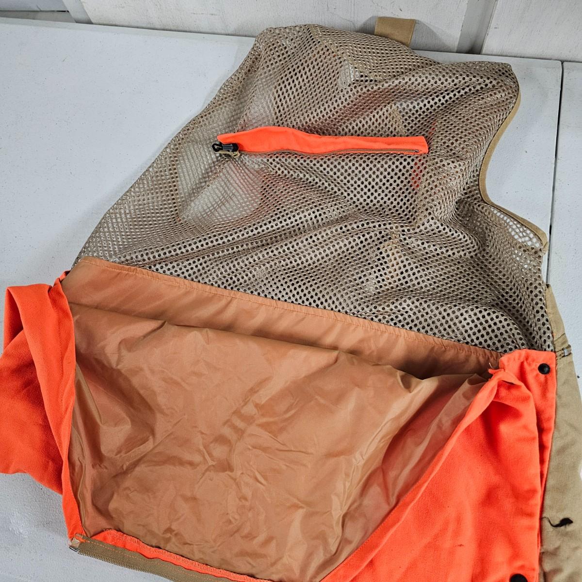 Large assortment of hunting gear, clothes, hats, bags and more. Most items are size L or XL. Remington game vest with multi pockets and ventilated back. One pair Hodgman over pants, size L, includes suspenders to hold them up. A few pairs of size L gloves with Goretex and Thermolite insulation. One XL bug resistant shirt in light camouflage colors. Ball caps, net head gear, insulated neck collars and more. One 48" long Great Smoky Mountains walking stick. See photos for details. Local pickup only.