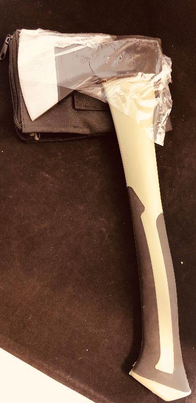 Camp Axe Hatchet NEW, with sheath/cover. Steel head with strong polymer handle. 3 available at this price. Shipping is available as well.