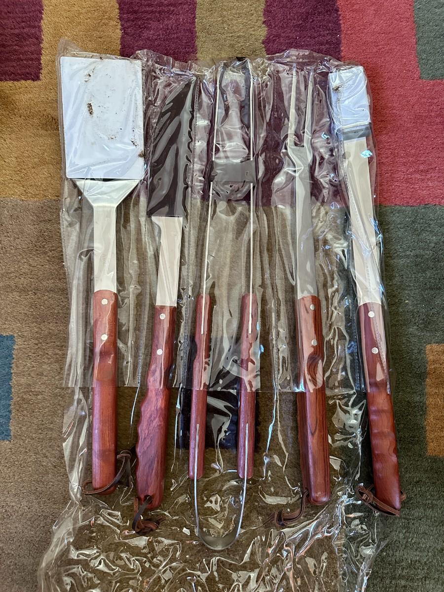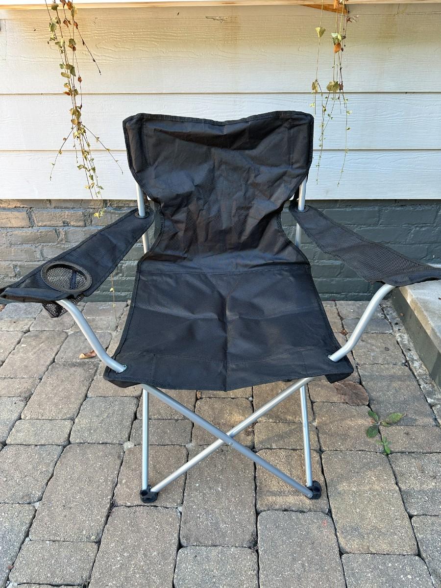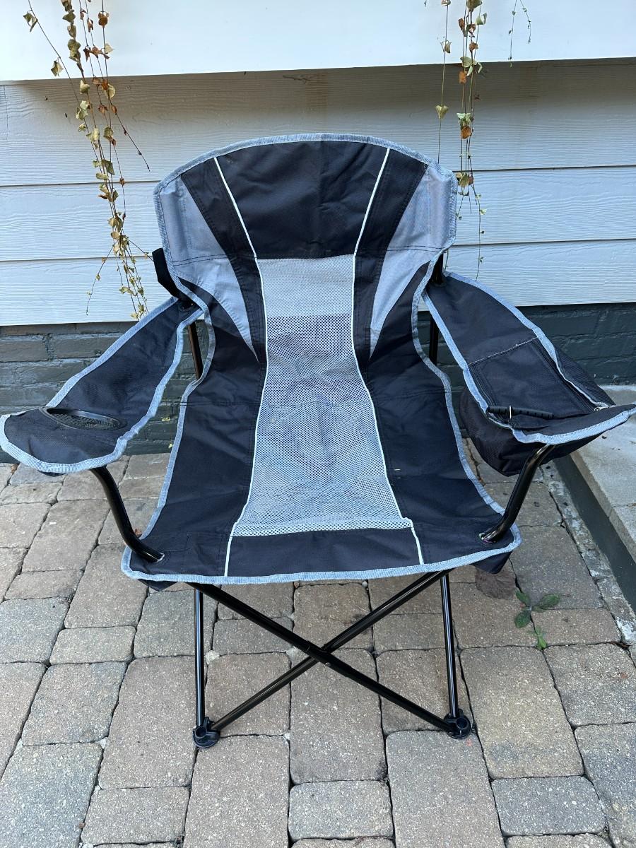 2 Ozark Trail Camp Chairs in/Carry Bags. 1 set of BBQ Tools in Green Zipper Canvas Bag