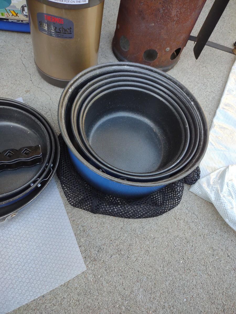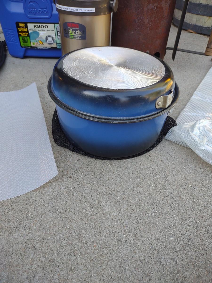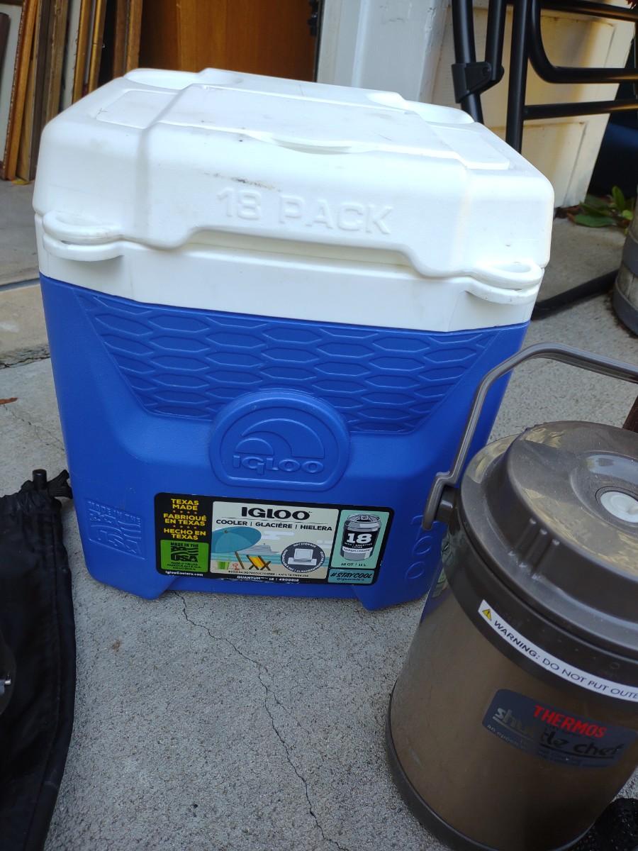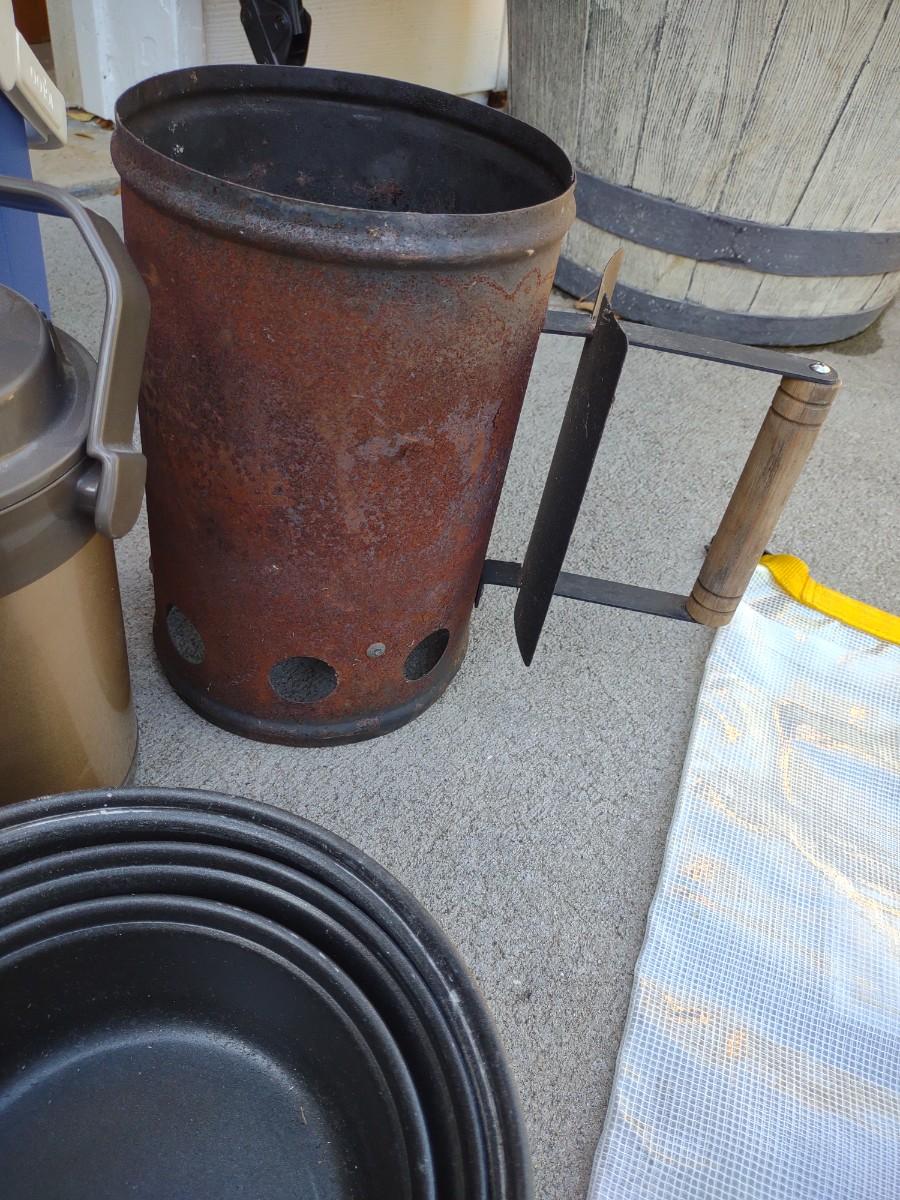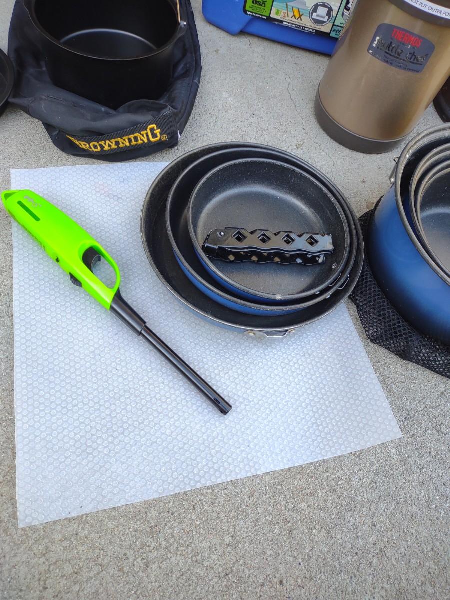 CAMP FIRE COOKING ITEMS, COOLER AND THERMOS