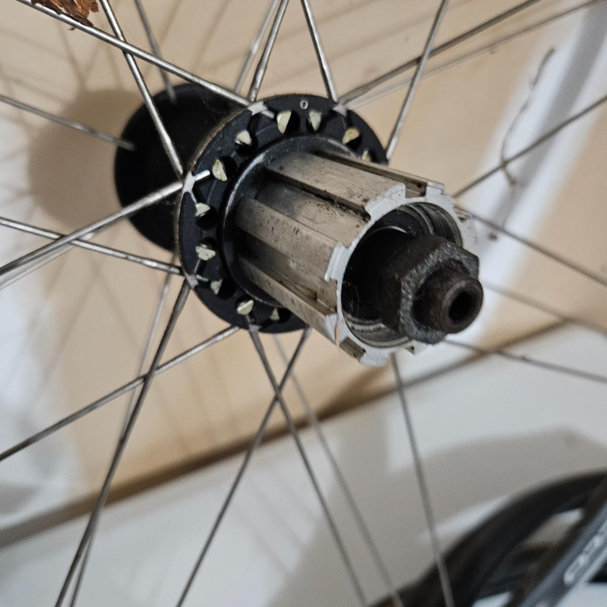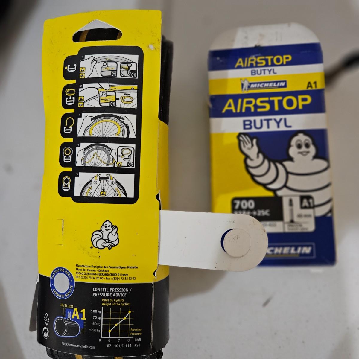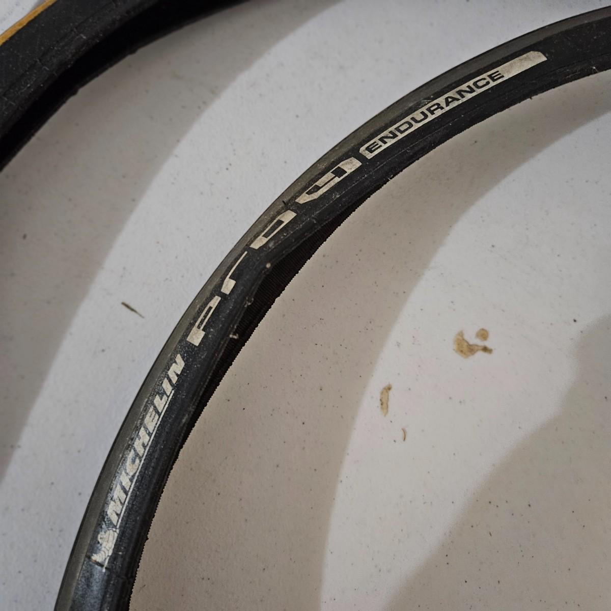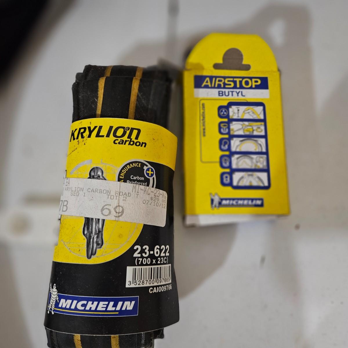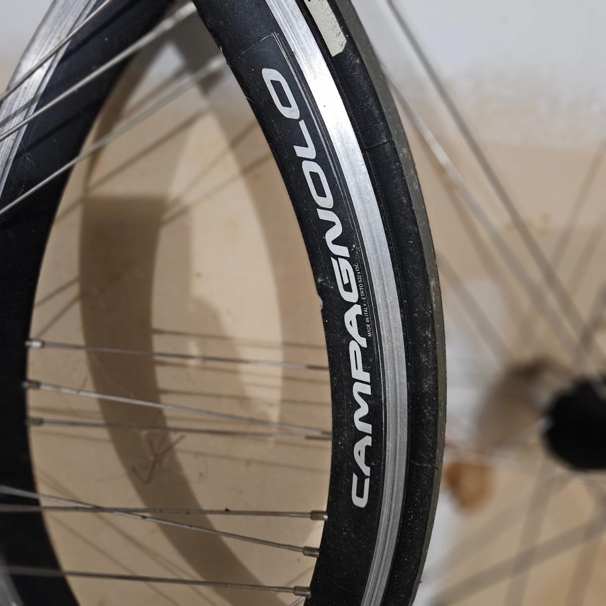 A Campagnolo Scirocco G3 wheels etc that appear to be 700 x 23 and both hubs spin freely. Also includes a Michelin tube, a pair of Michelan Krylion tires and a pair of Michelan Pro 4 Endurance tires. Shipping available