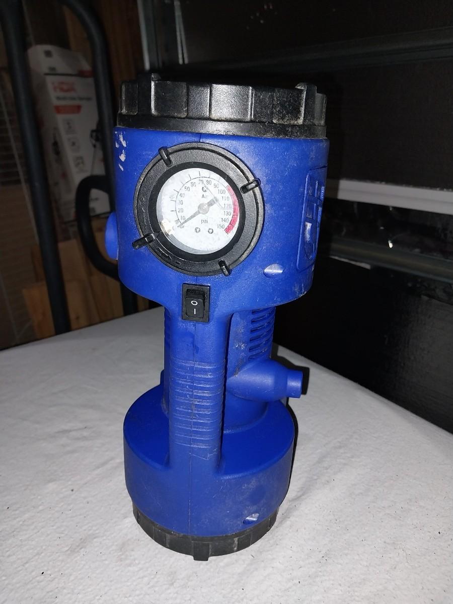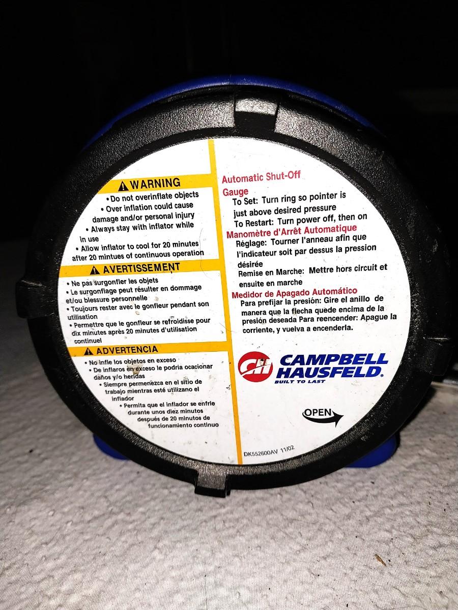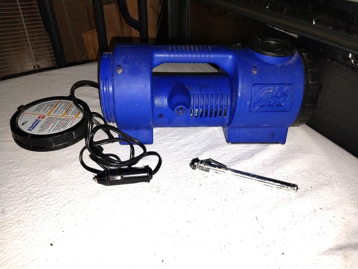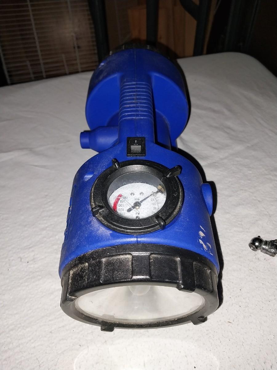 CAMPBELL HAUSFELD CAR AIR INFLATER/FLASHLIGHT PLUGS INTO CIGERETTE LIGHTER AND TIRE AIR GAUGE