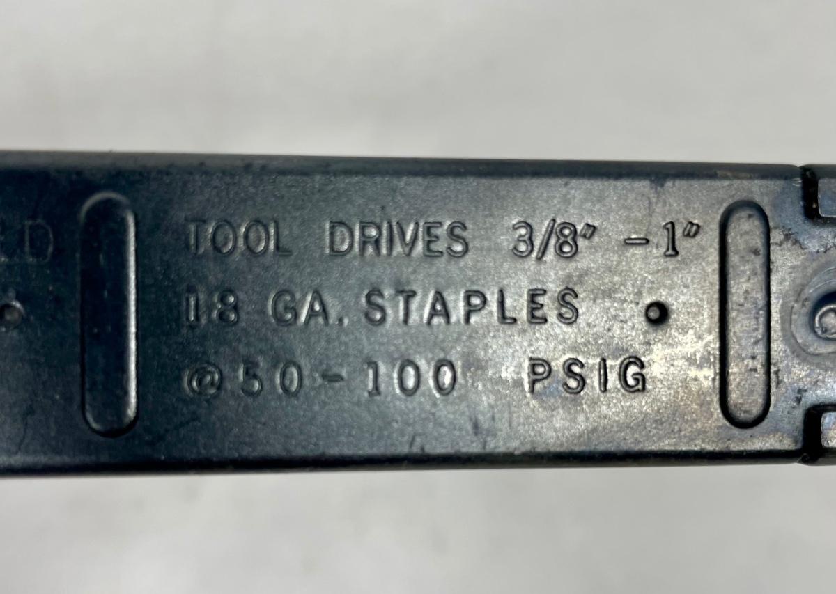 Uses 3/8” to 1” 18 gauge staples. Made in Taiwan, untested but appears to be in good condition.