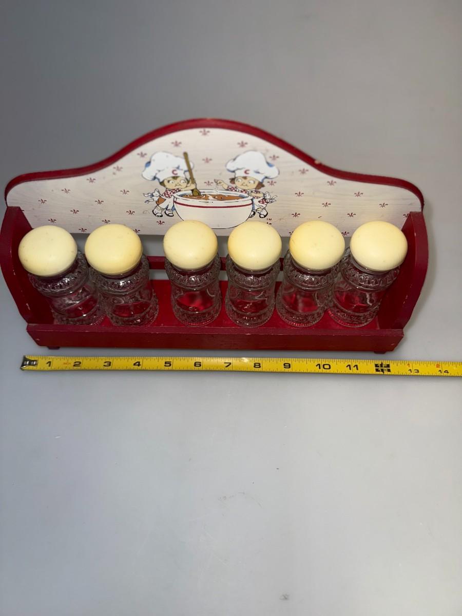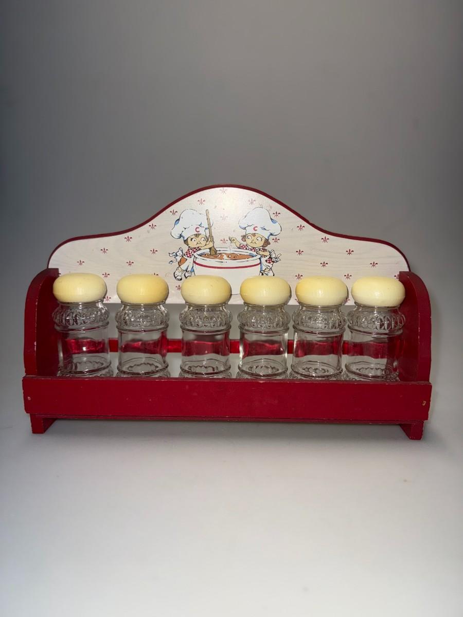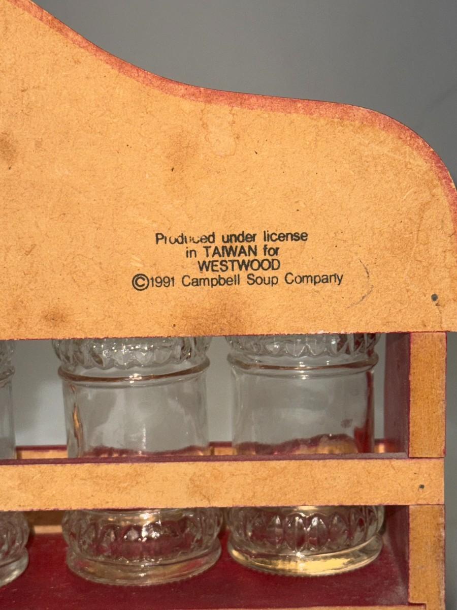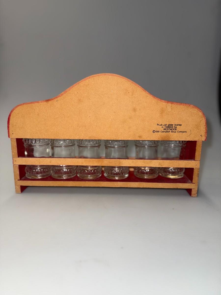 Campbell Soup Wooden Spice Rack w/ 6 jars