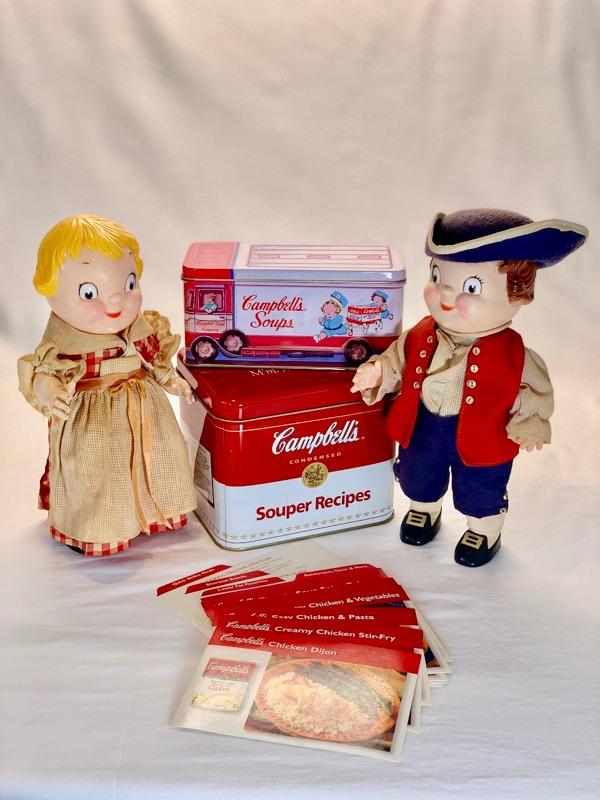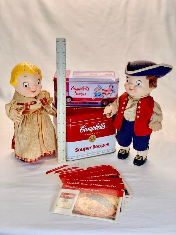 Vintage Campbell's soup kids Boy and Girl 10" tall. Girl is missing the hat overall in good condition also comes with Tin cans. Shipping available for extra cost.