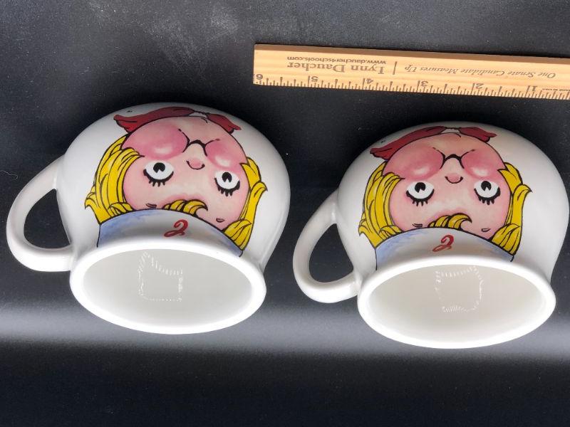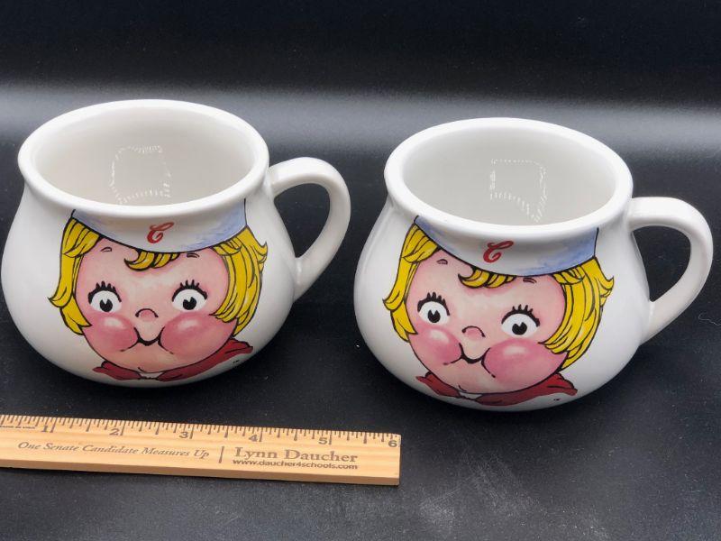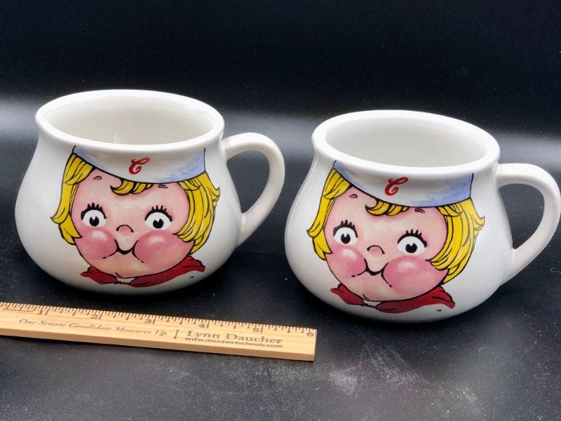 Campbell's Soup Kids Mugs / Bowls with handles red & white wiith Yellow hair