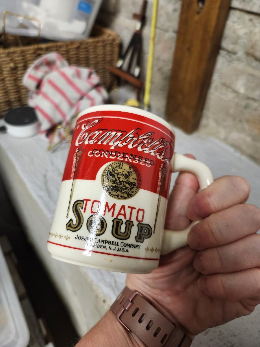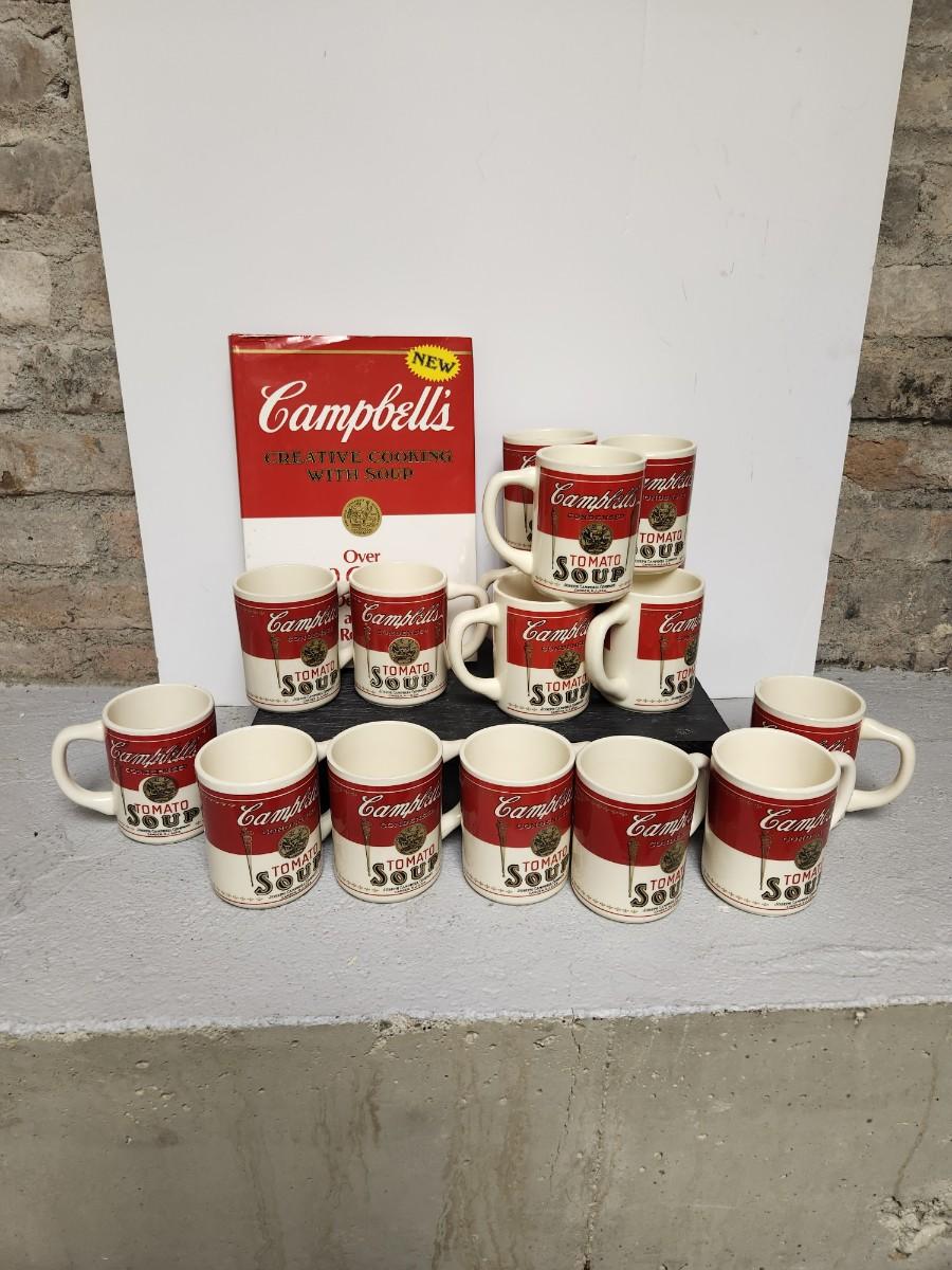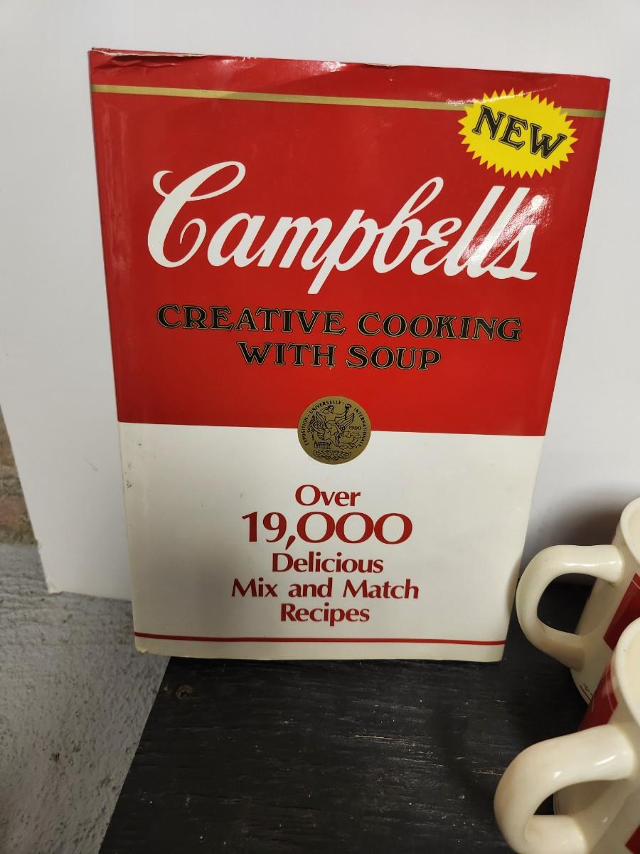 Cute Campbells soup mug and cookbook lot. Notice the misprint on the one mug
