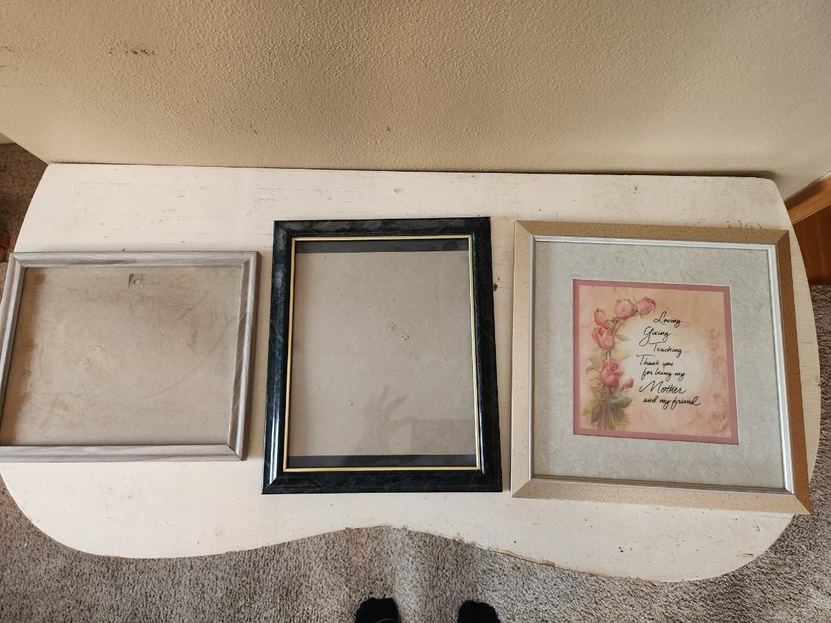 3 picture frames and Hanging campfire wall art.