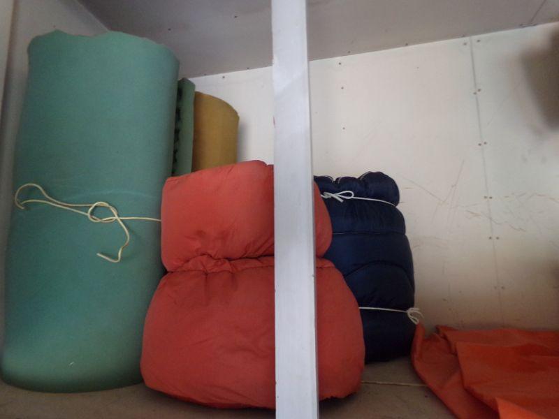 SLEEPING BAGS AND PADS. THEY HAVE LOTS OF WEAR. THERE IS OTHER STUFF FOR CAMPING.