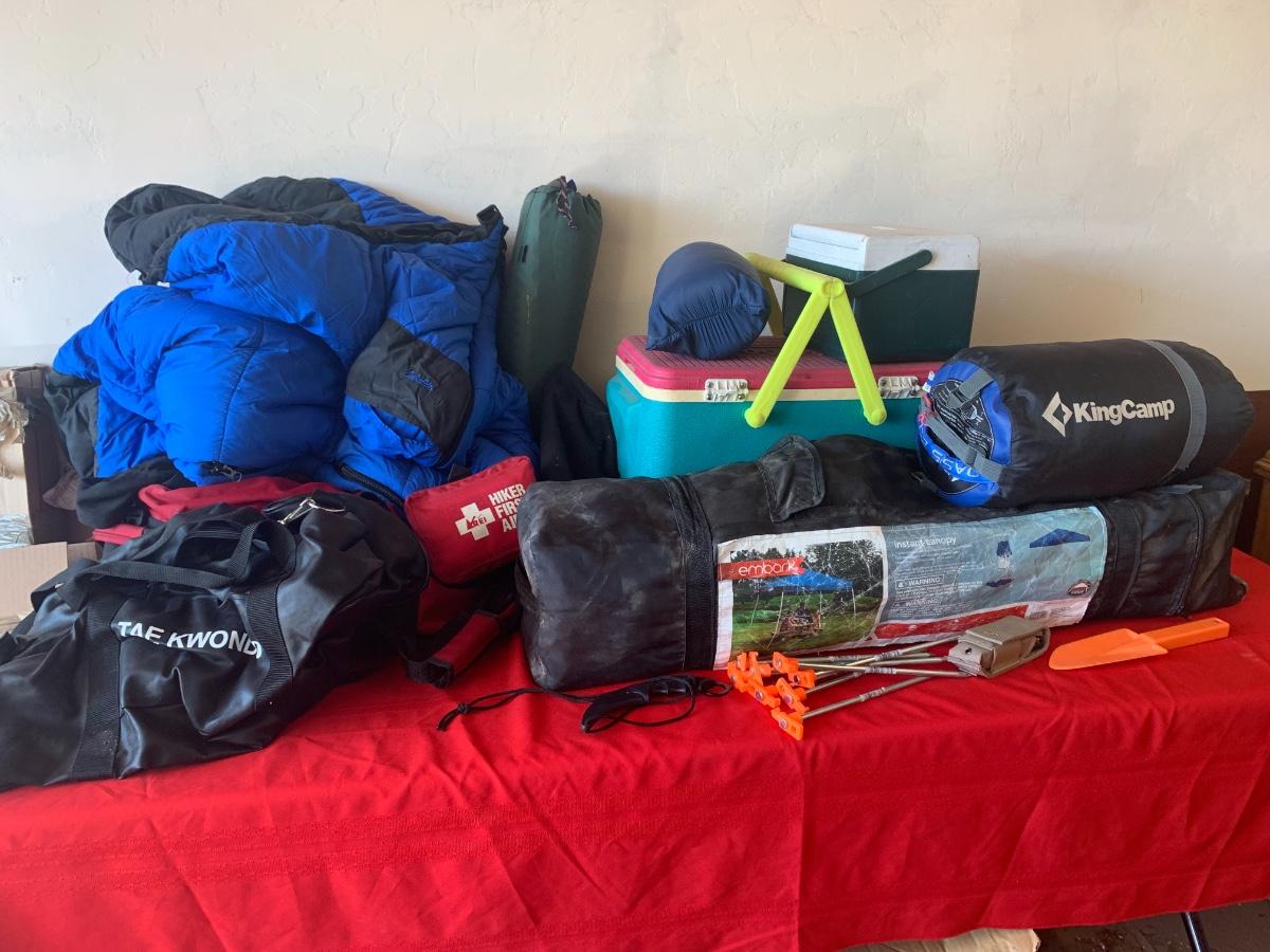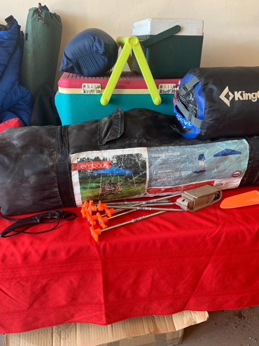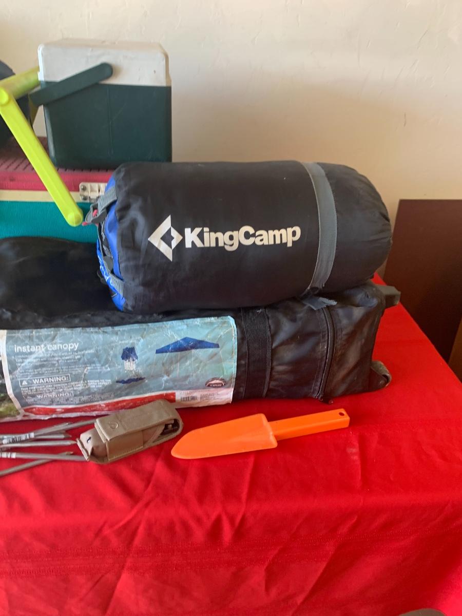 Camping accessories including sleeping bags, ice chests, canopy, first aid kit and more. Including brands like Coleman, embark, cabelas and more. Perfect for the camping connoisseur