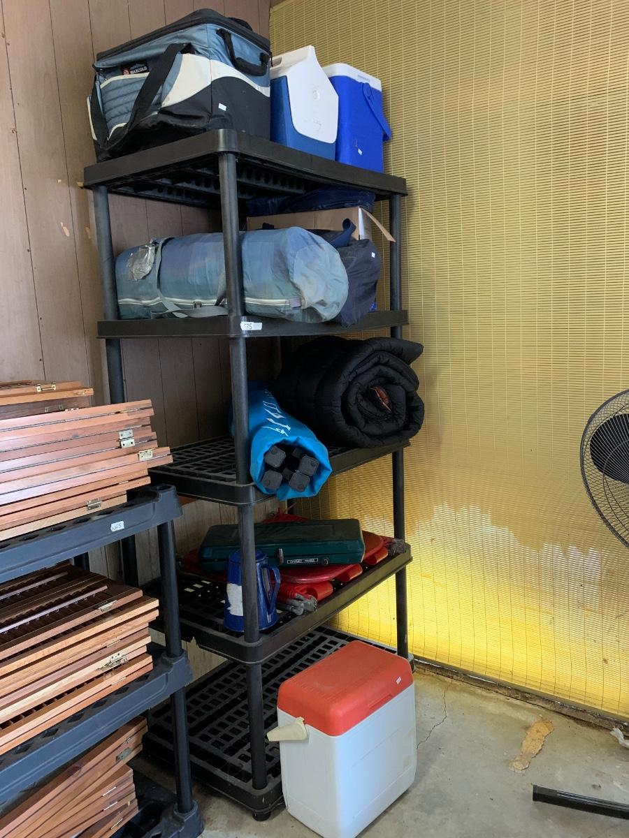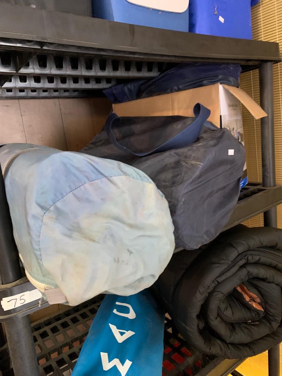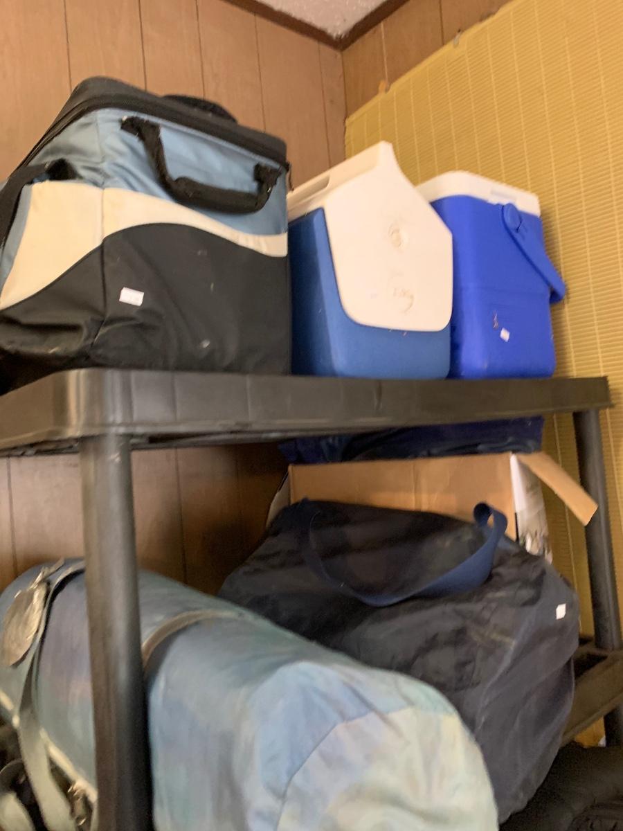 Stove, chair, sleeping bag, tent, air mattresses, coolers