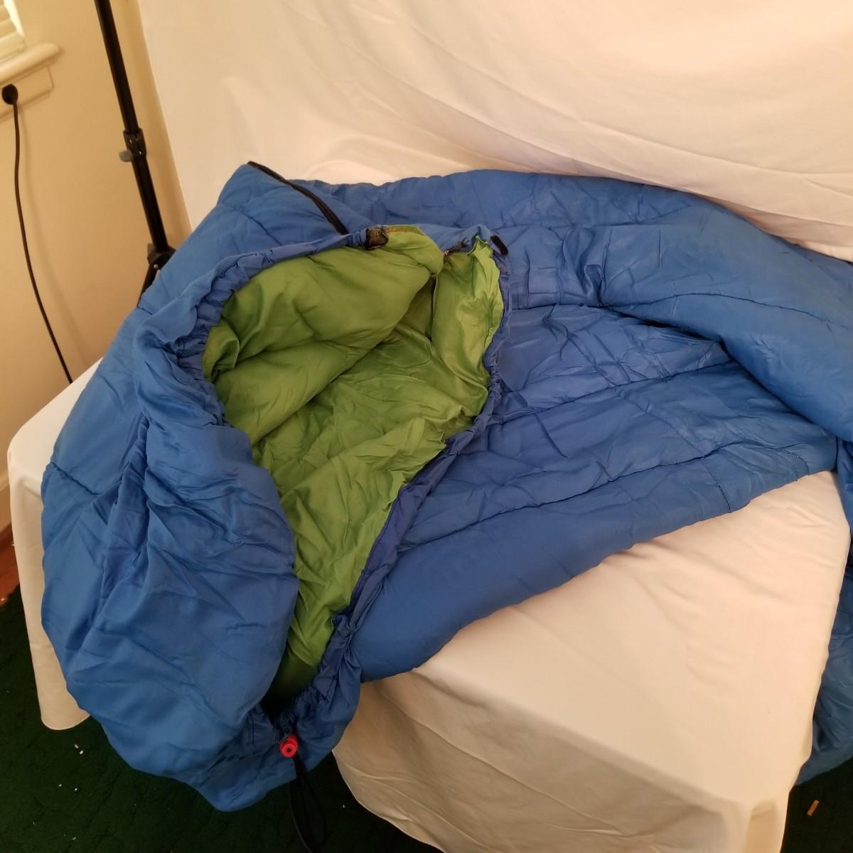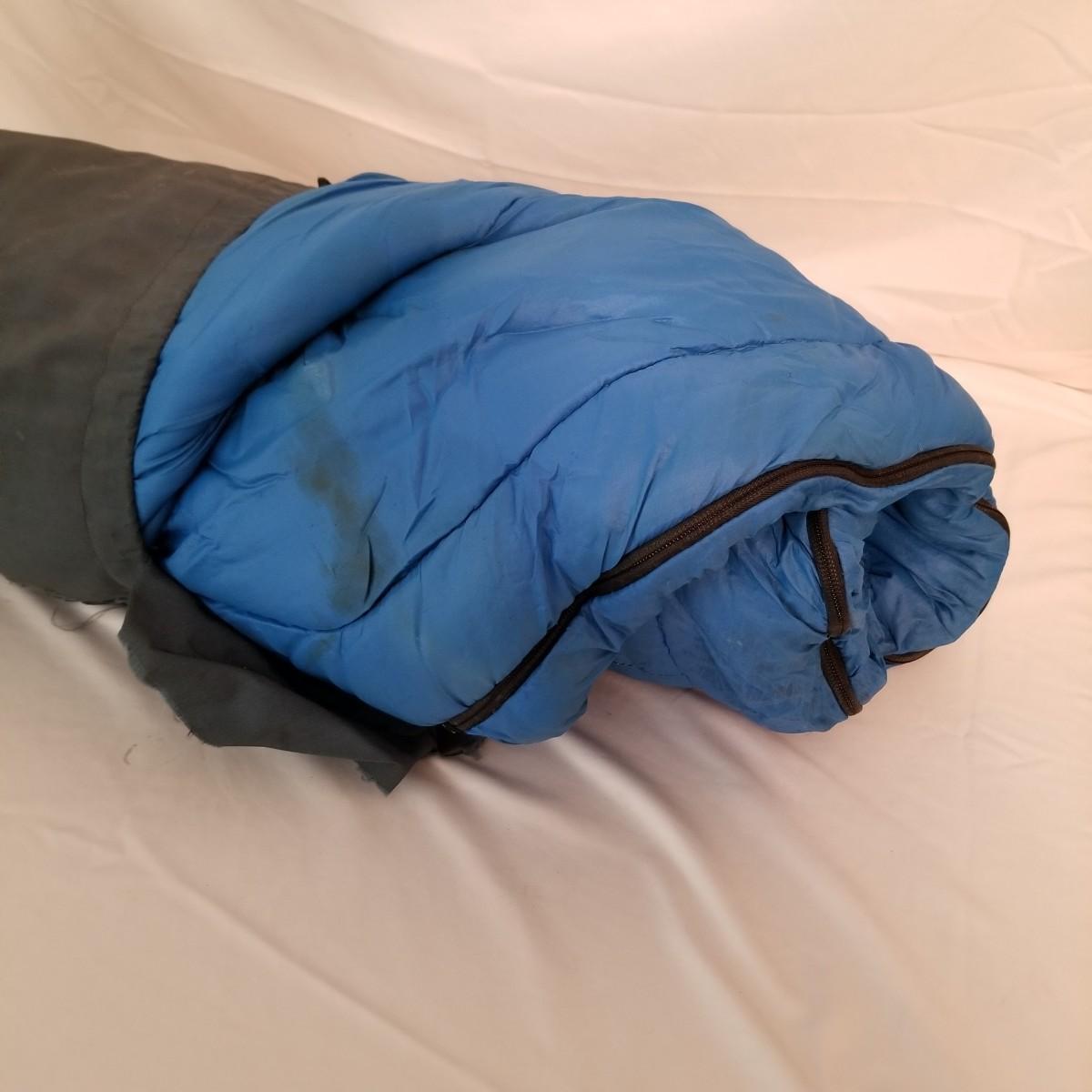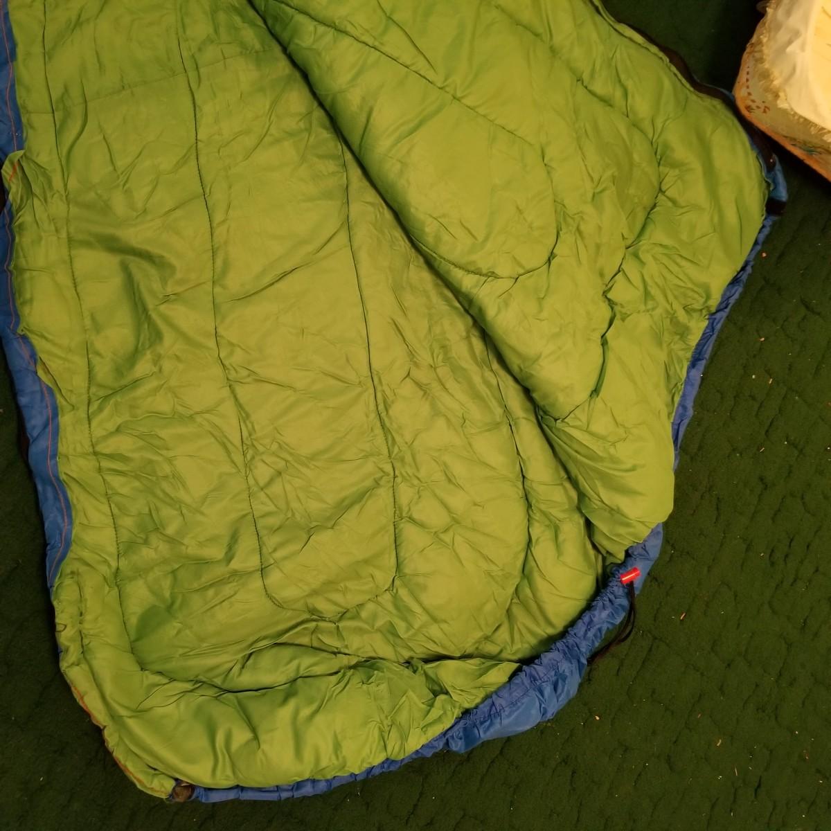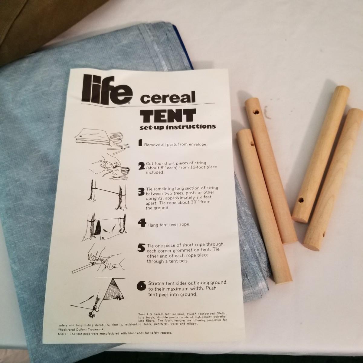 Sleeping bag, knapsack and more for camping. Family guide book to camping, Life cereal lean-to tent, small backpack, and a 30" x80" sleeping bag with carry sack. All items in good to fair condition. Shipping available.