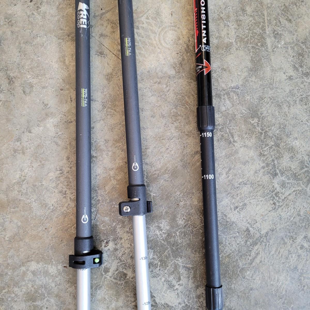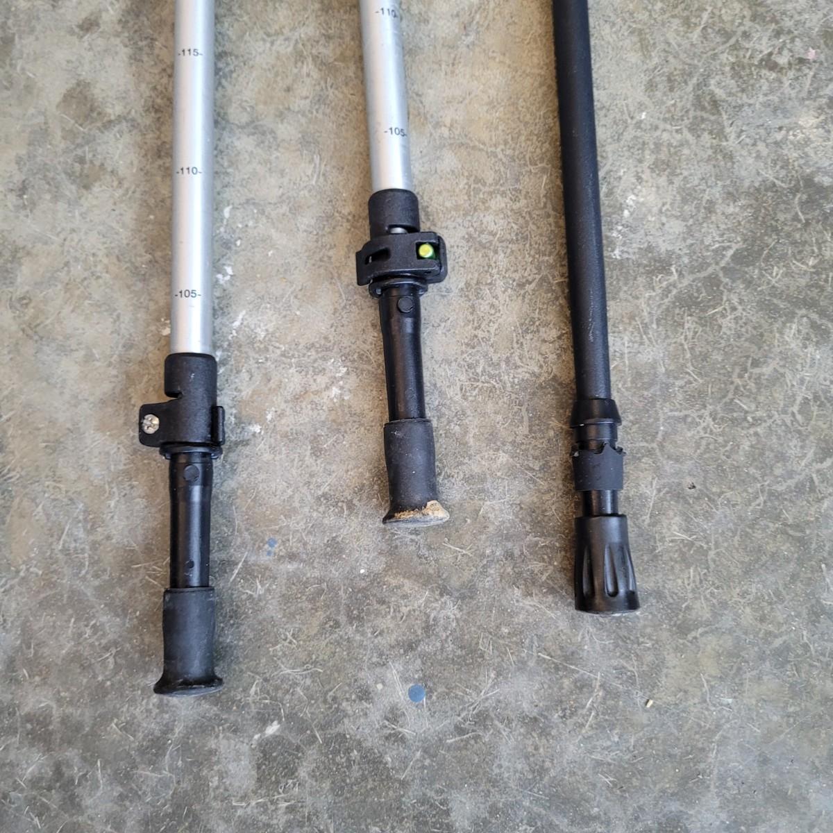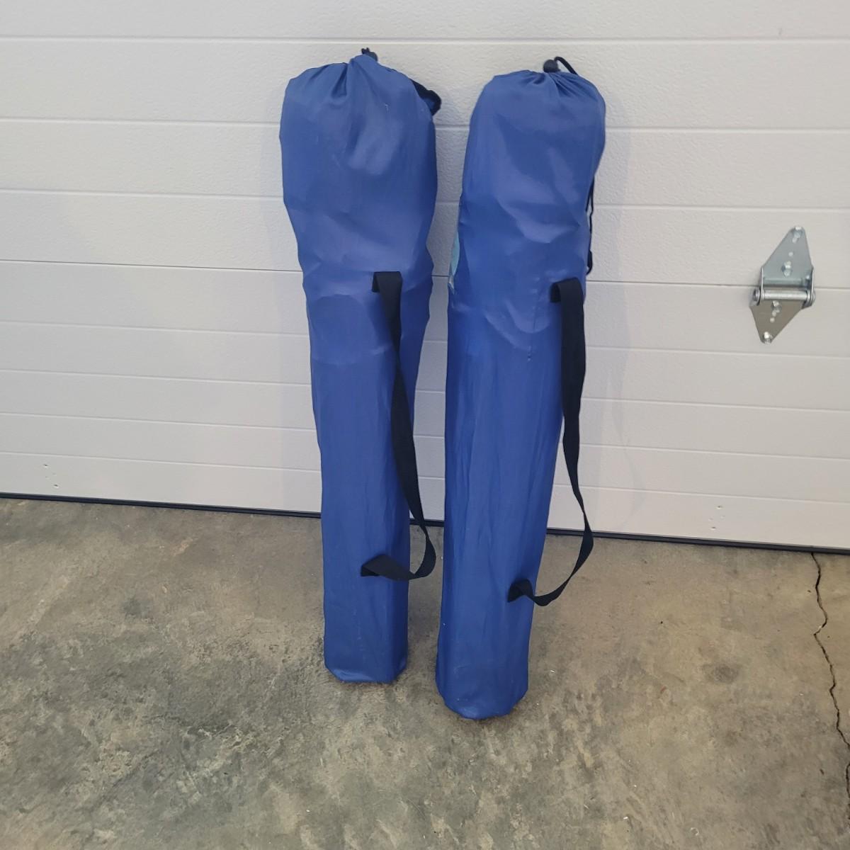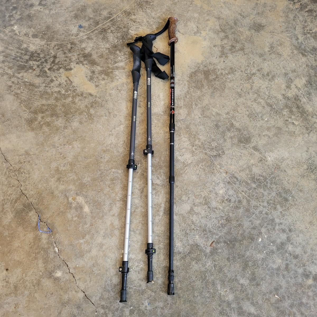 This lot includes various camping and outdoor supplies. Items included are two folding camping chairs with bags, three walking sticks, a big bulb, mosquito repellent incense, bug spray, electric bug racket, and electronic rechargeable lighter. The racket and lighter were not powered on, but appear to be chargeable. Incense, bug spray, and bug bulb appear to be unopened.