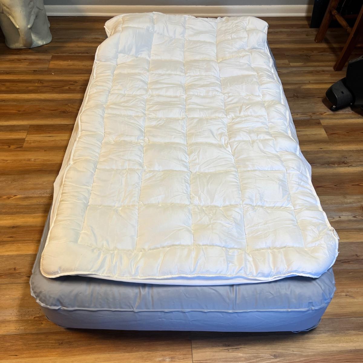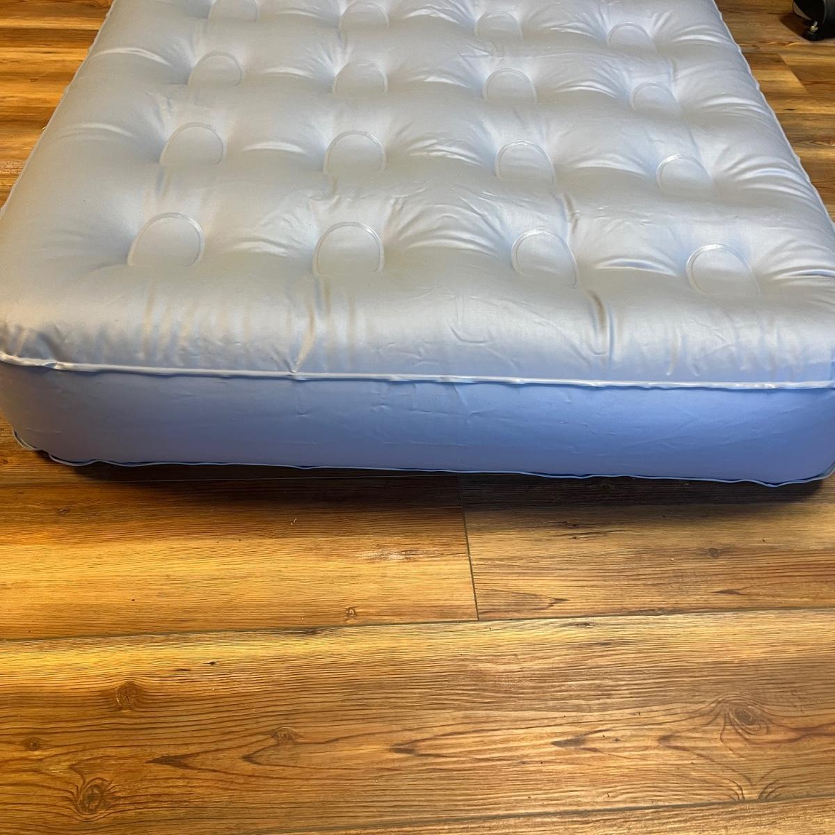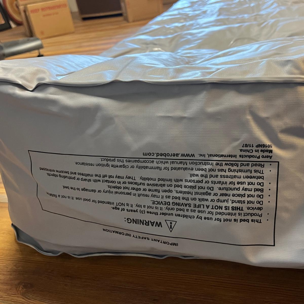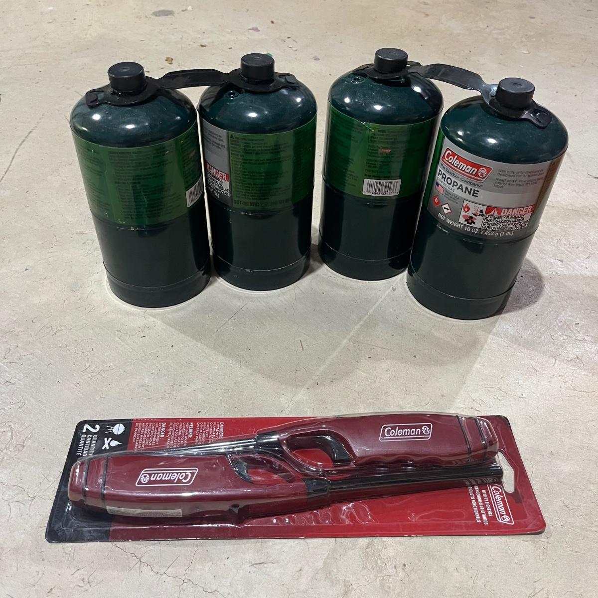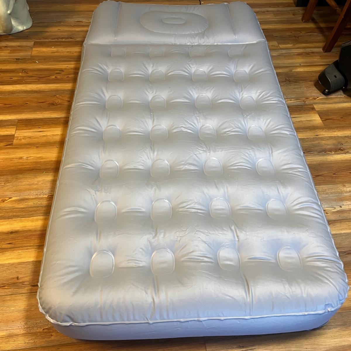 Lot includes twin size Aerobed with, pump, sheet set, blanket and mattress cover, NIB Ozark Trail double burner stove, oil lamp, REI plastic coffee cups and a metal coffee pot, two folding chairs, two duffel bags, tarp and more. Tarp measures 10"â„¢ x 14.