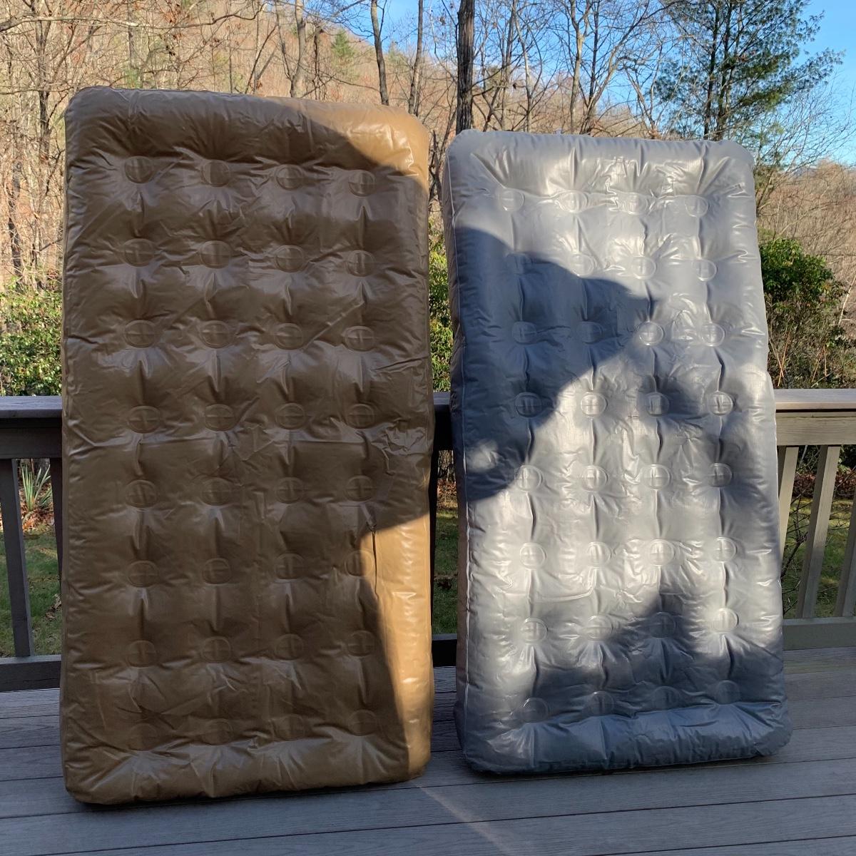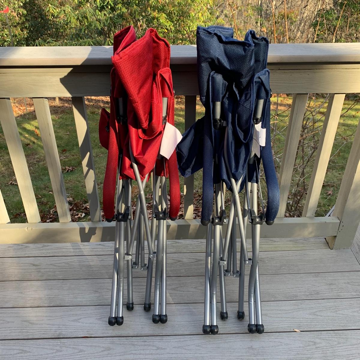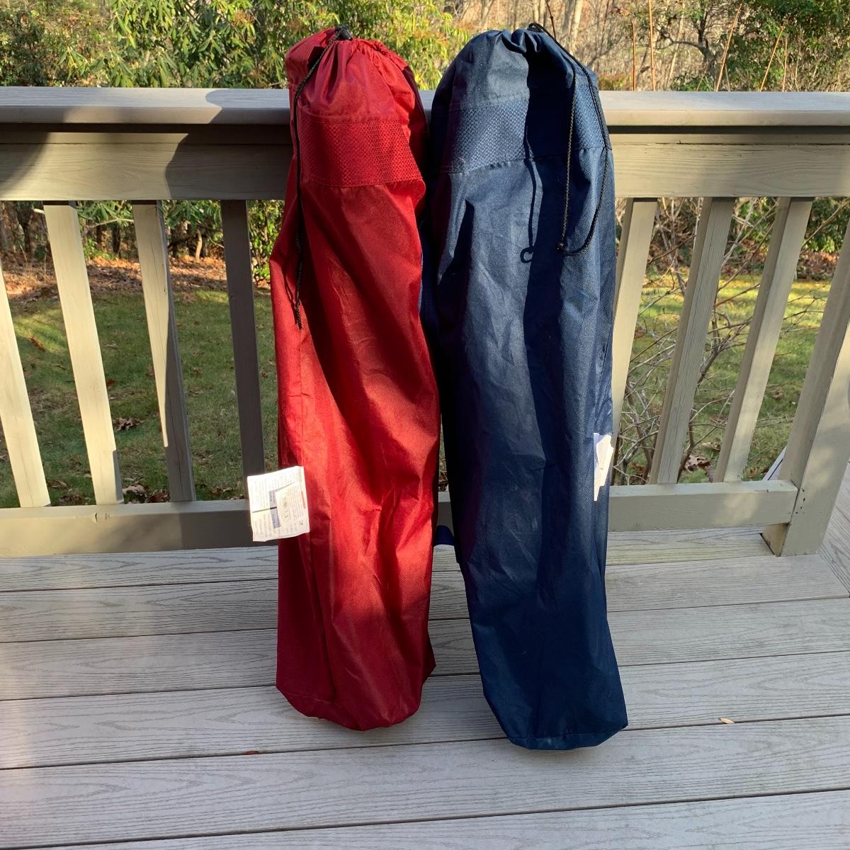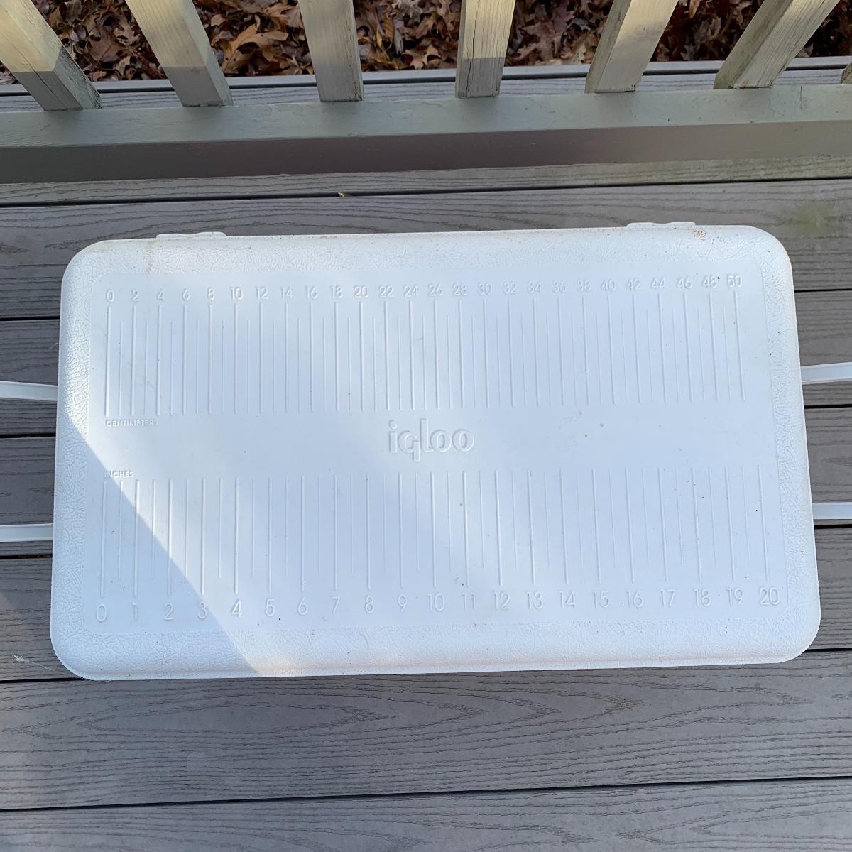 This lot includes a variety of great camping gear. Two folding arm chairs are included, with their carrying bags. The have cushioned arm rests. There is a 52 quart Igloo brand cooler with two handles. It has some debris inside that can easily be cleaned out. There are two Field & Stream brand sleeping bags in stuff sacks and camping pillows in stuff sacks. There are two single sized blow up air mattresses. They were tested and held air for over an hour. Pump is NOT included. One blue tarp completes this lot. Local pickup only.