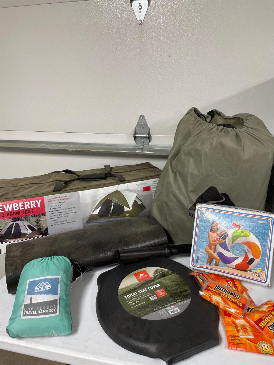 Two room tent, hammock, blowup mattress, and more