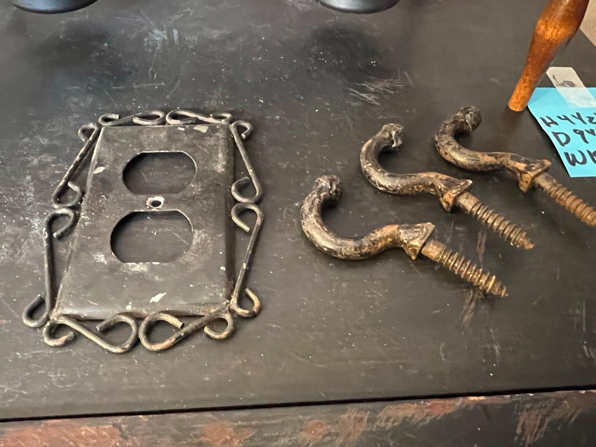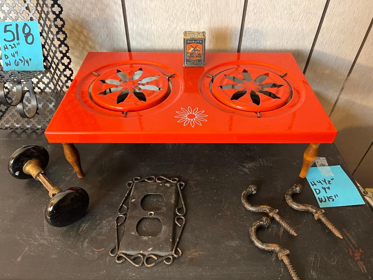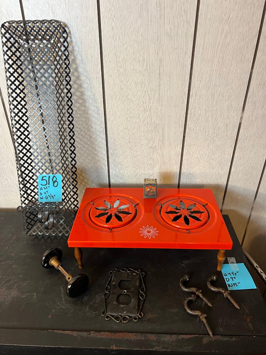 Vintage Stove, candle holder, outlet cover, 3 hooks, vintage door knob, plus