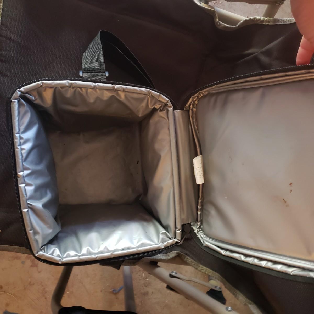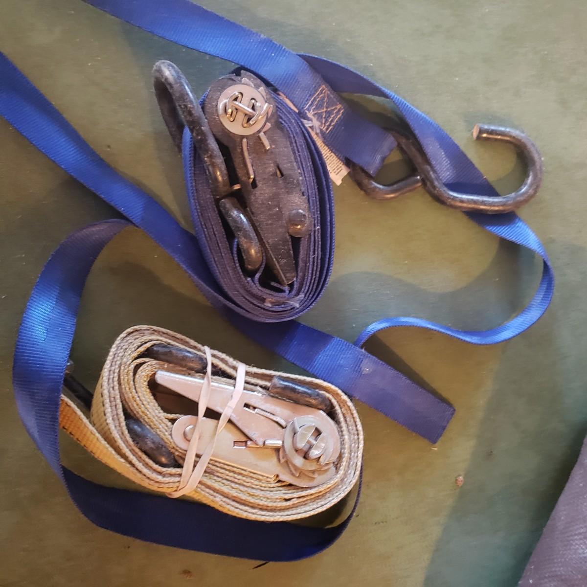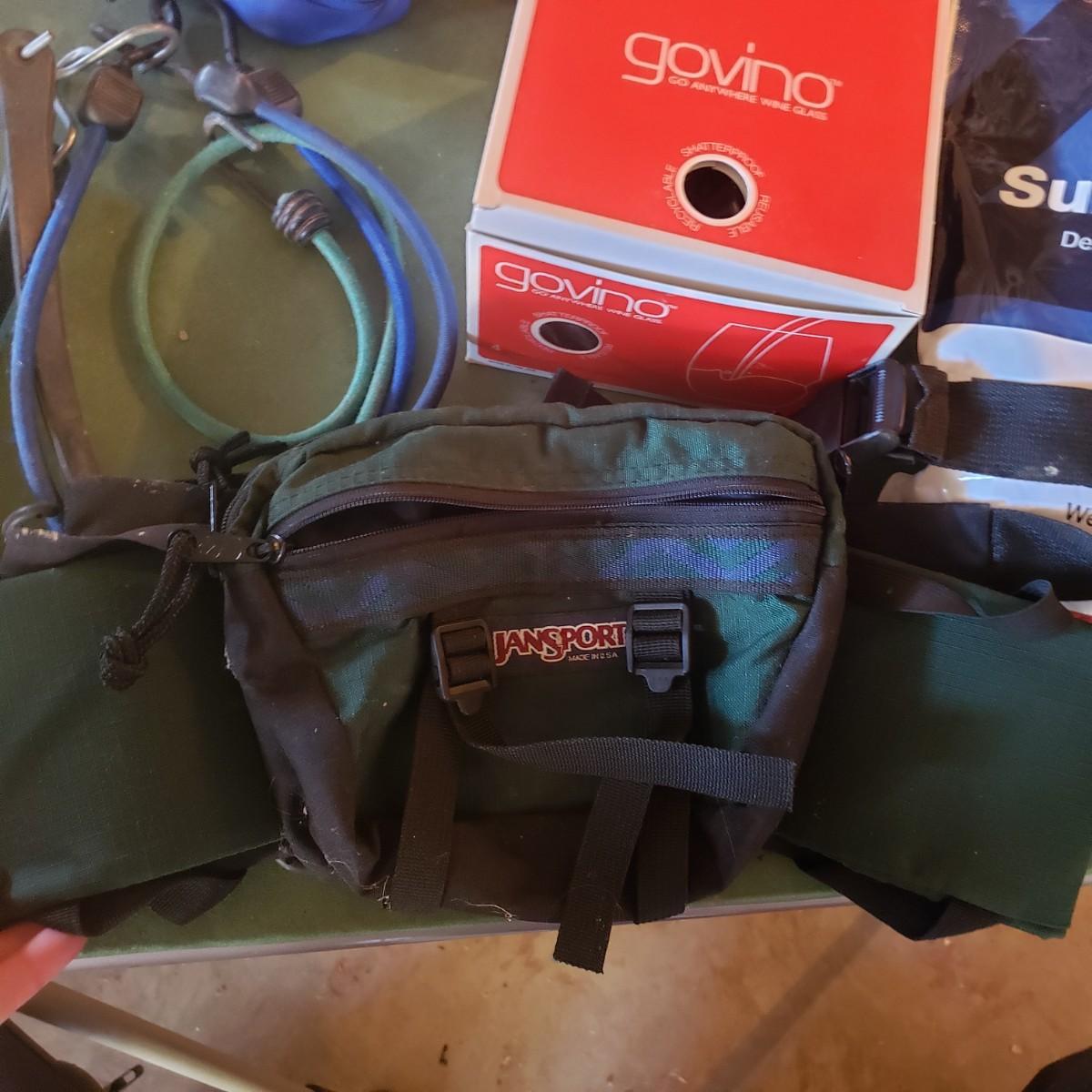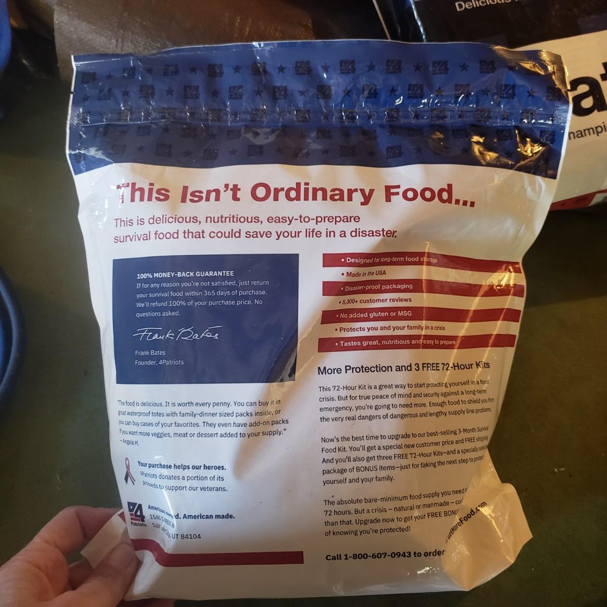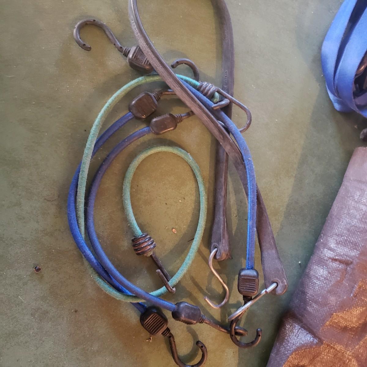 This lot contains bungee cords, two tarps and plastic sheeting, and a Coleman battery lantern. We couldn't test the lantern as it needs D batteries. Two packages of Patriot survival food will fill you up. The Jansen fanny pack has a cup holder. The two MacCabee fold up camping chairs appear barely used. They have a sturdy feel to them. Both come in a strapped carrying case.