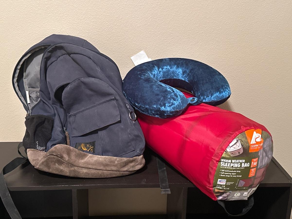 Eddie Bauer Back pack, neck pillow and a sleeping bag!
