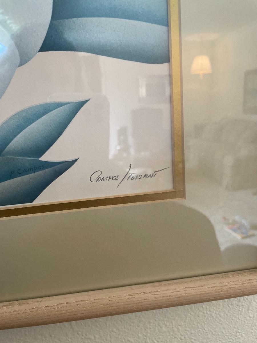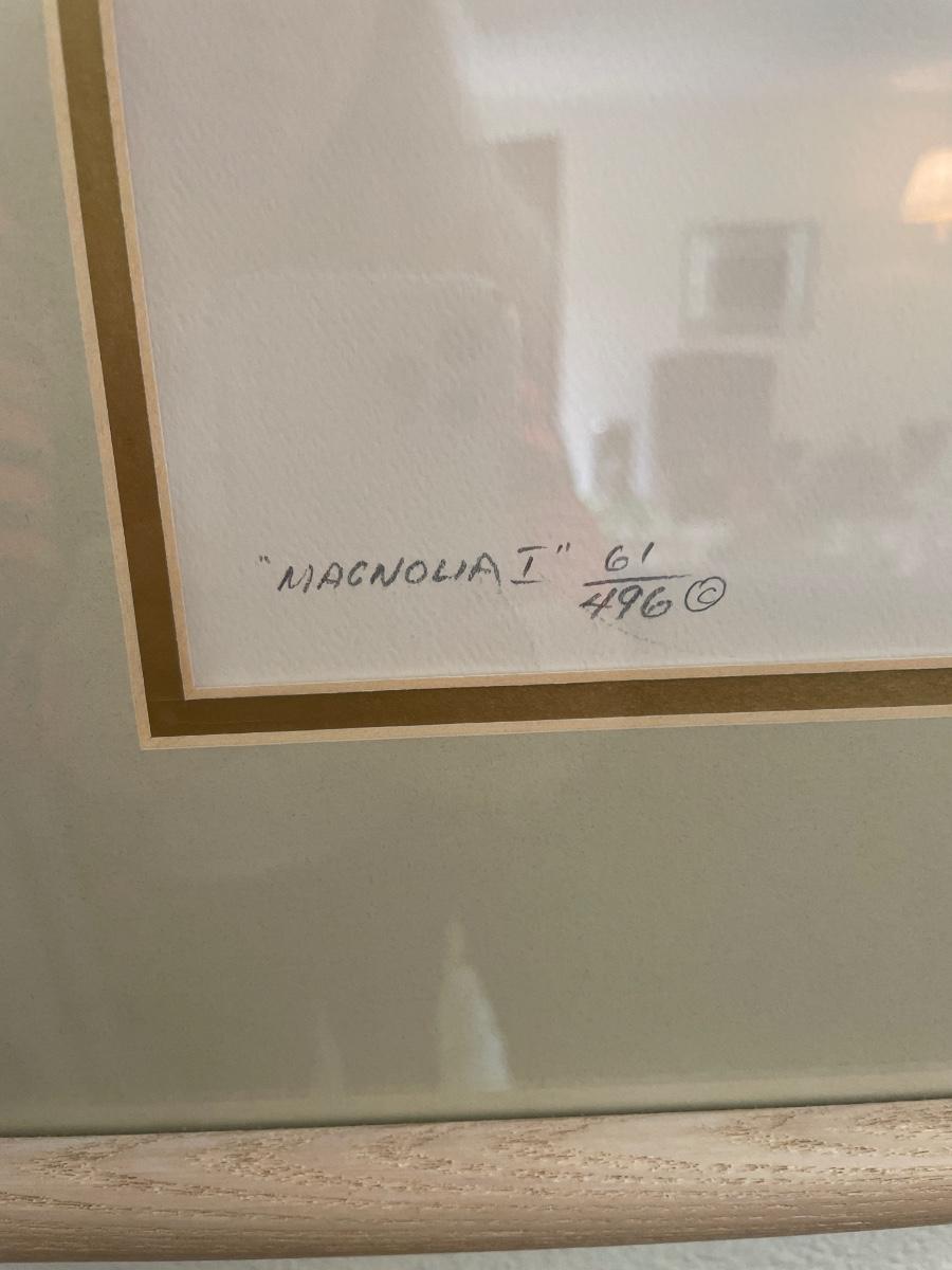 P. Campos/Tessant “Magnolia” wood framed art 26lx31”h