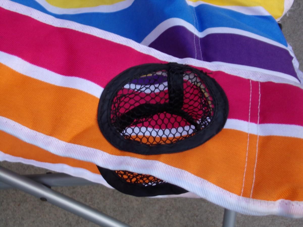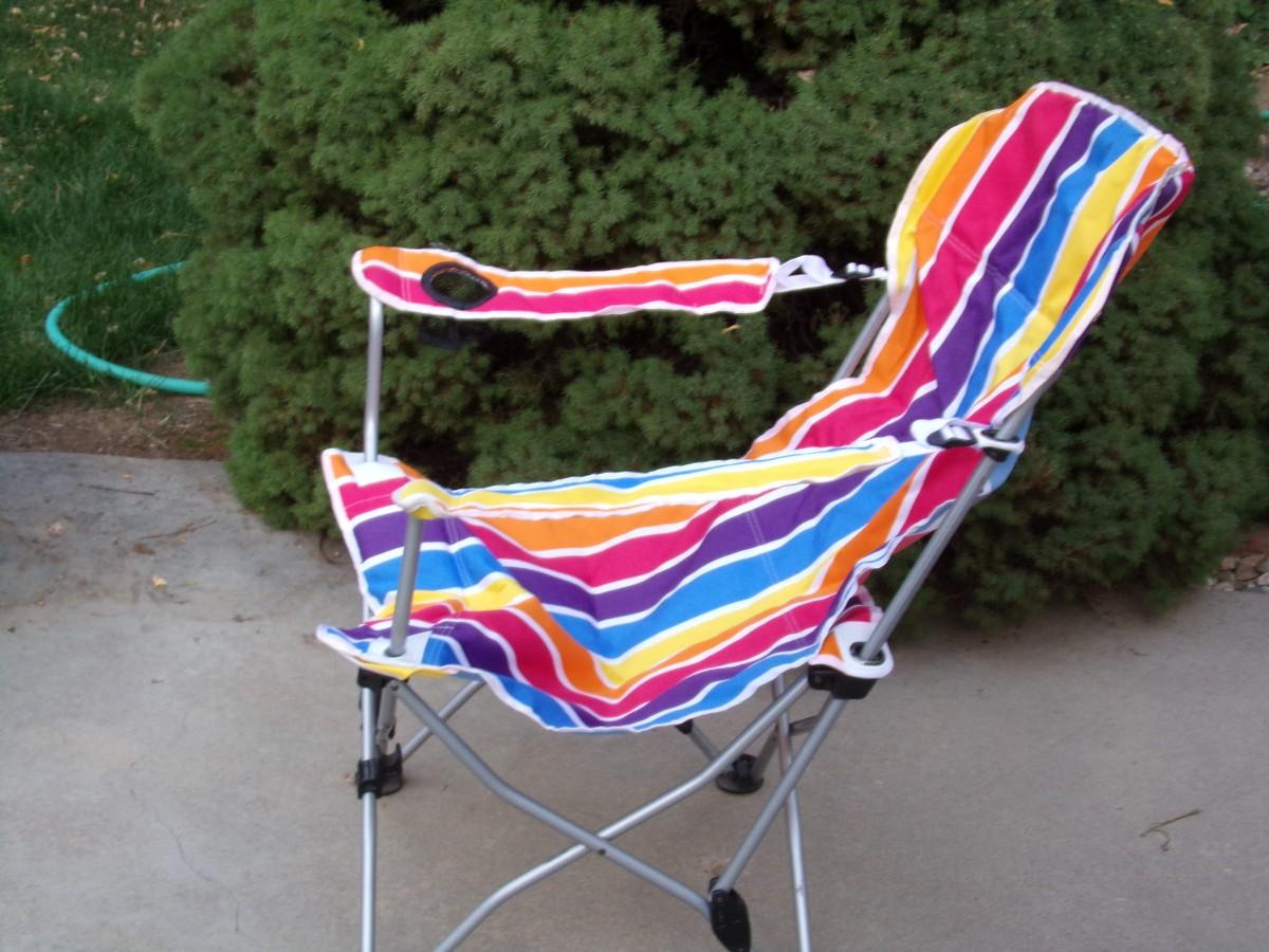 Camp/patio folding 2 way chair, sit up or recline. cup/can holder, w/carry bag & strap