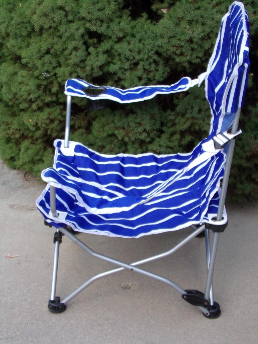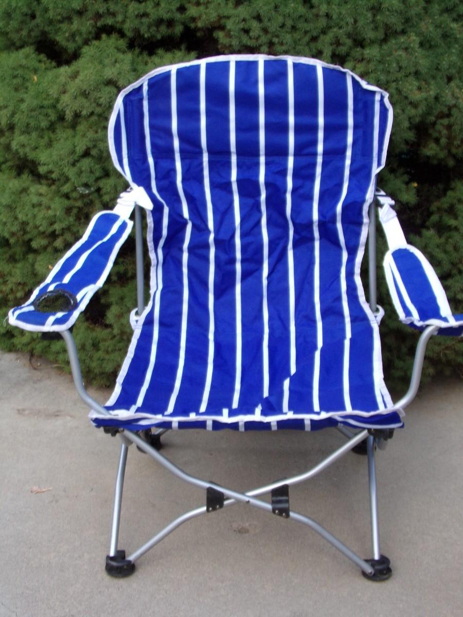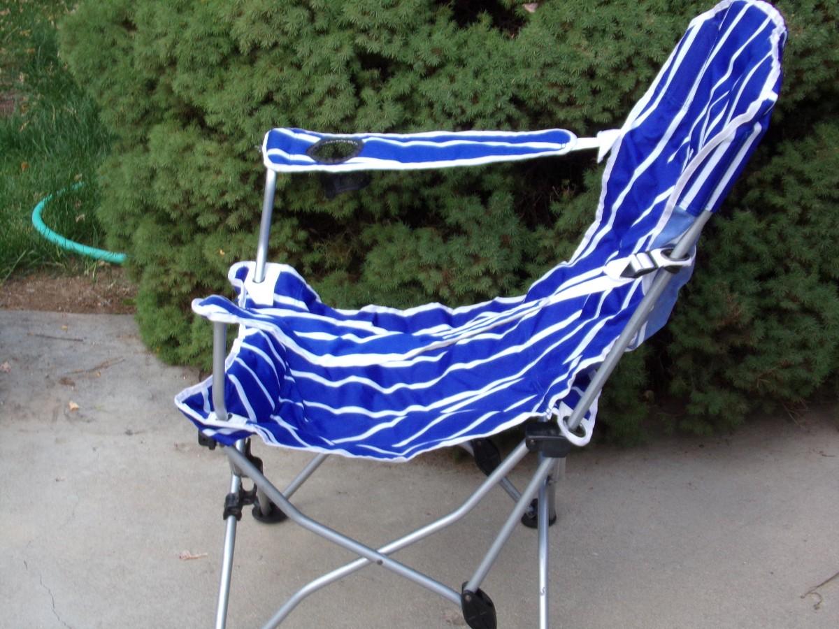 Camp/patio folding 2 way chair, sit up or recline,.w/cup/can holder, carry bag & carry strap