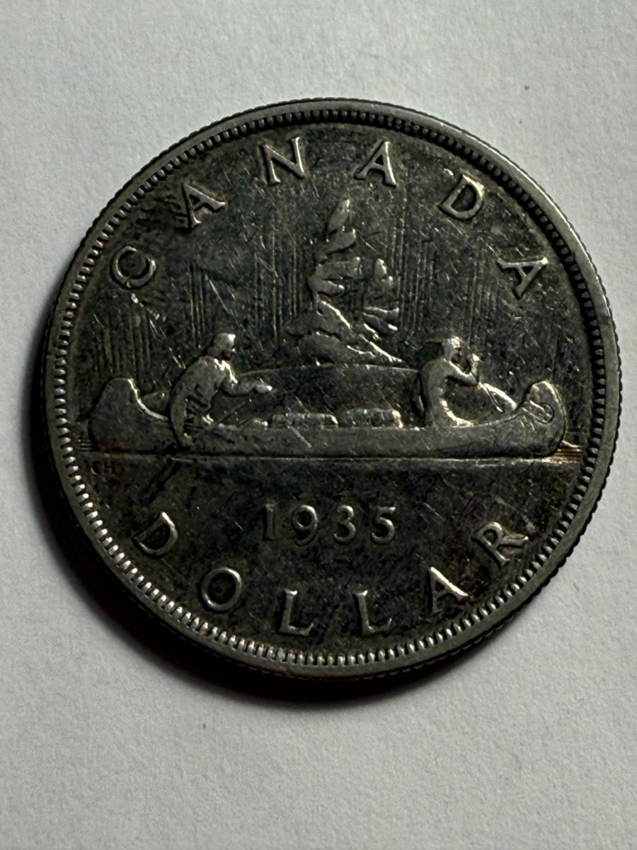 Canada 1935 Circulated Silver Dollar King George V 80% Silver 23.3grams as Pictured. $5 DOMESTIC SHIPPING.