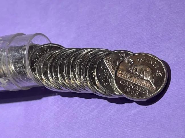 Canada Elizabeth II 1963 (Eye In 6 Error Variety) Five Cents Roll of 40 Coins in Nice Uncirculated Condition. $5 DOMESTIC INHOUSE SHIPPING.