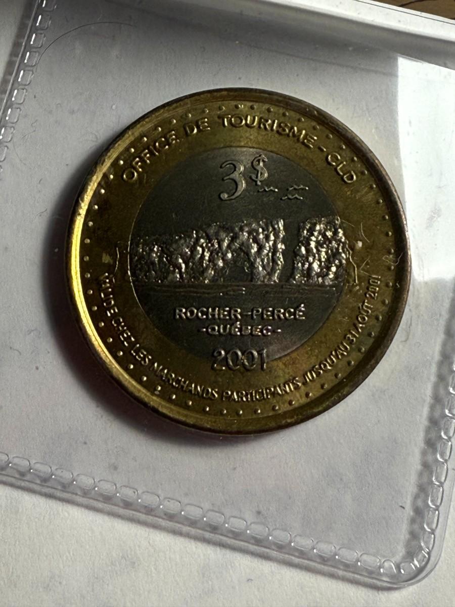 CANADA PORT DANIEL 2001 BI-METALLIC $3 TOKEN MINTAGE-1000 SIGNED BY FRANCIS DUMONT AS PICTURED. $5 DOMESTIC SHIPPING.