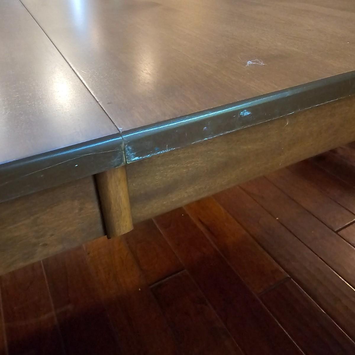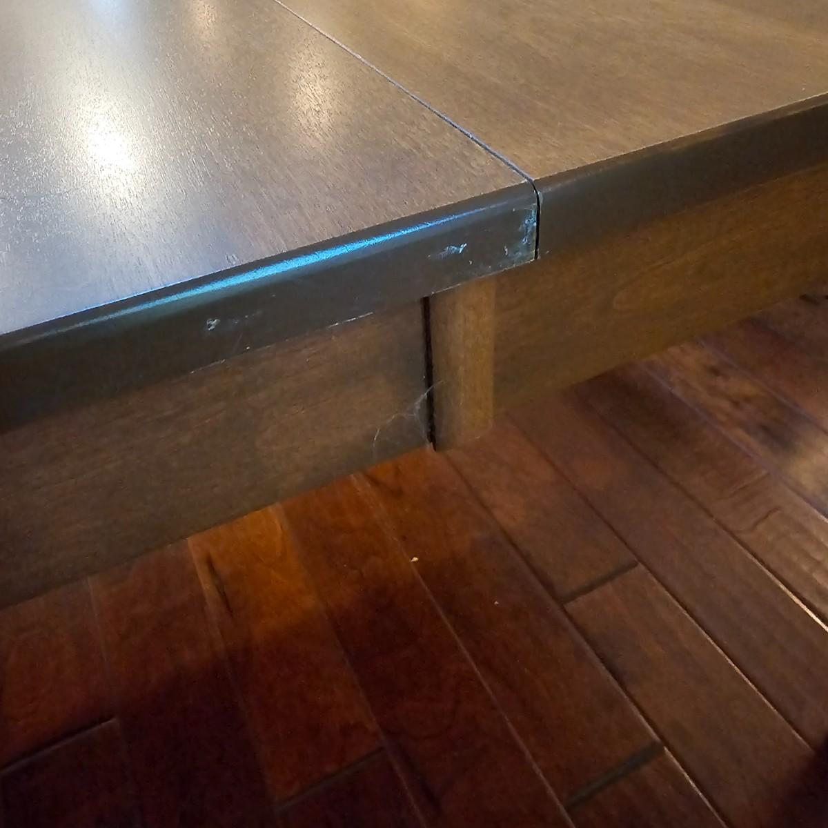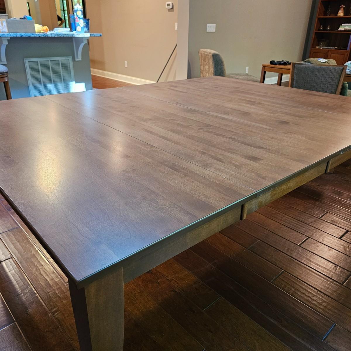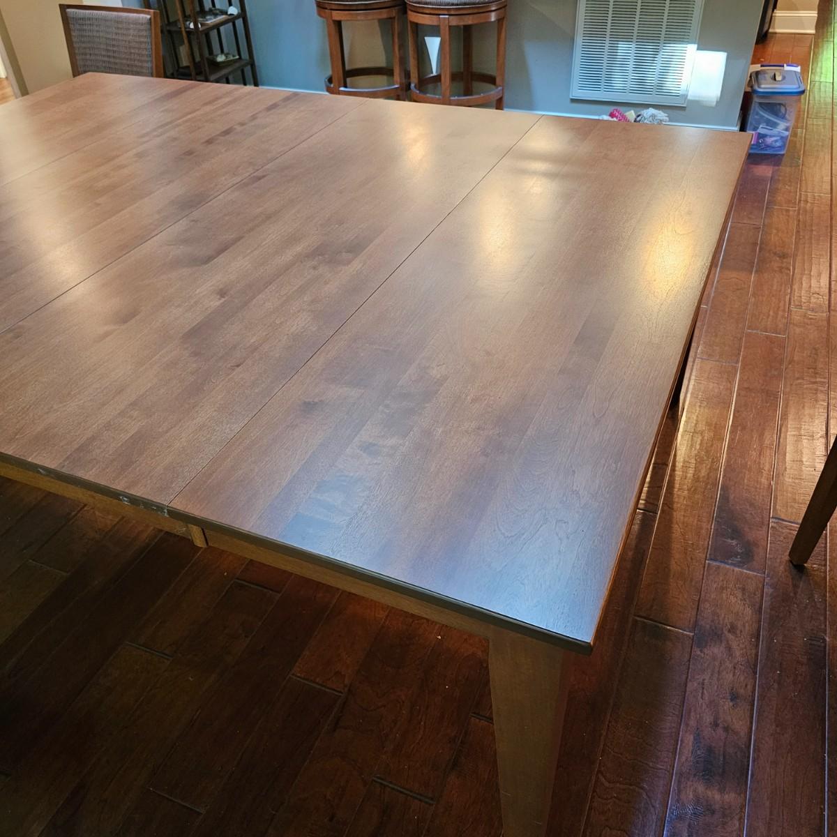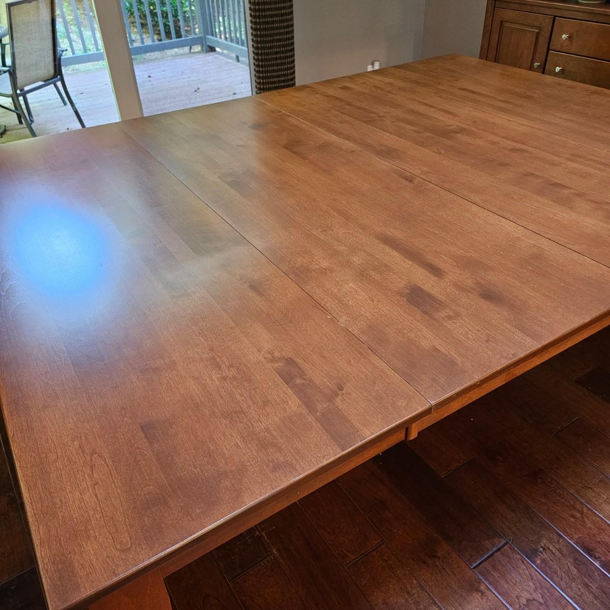 Beautiful maple dining table by Canadel of Canada. Table has natural color finish, tapered legs, and measures 40" x 60" x 30"H. With the addition of the two 20" leaves it expands to 80" x 60" x 30"H. See photos for details. Also see separate listing for dining room chairs in this auction. Local pickup only. Winning bidder must bring assistance to help move and load this item due to its weight and/or size.