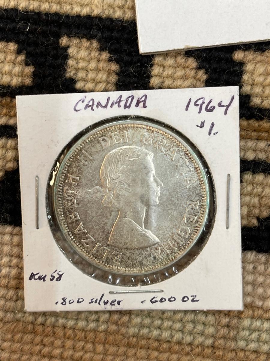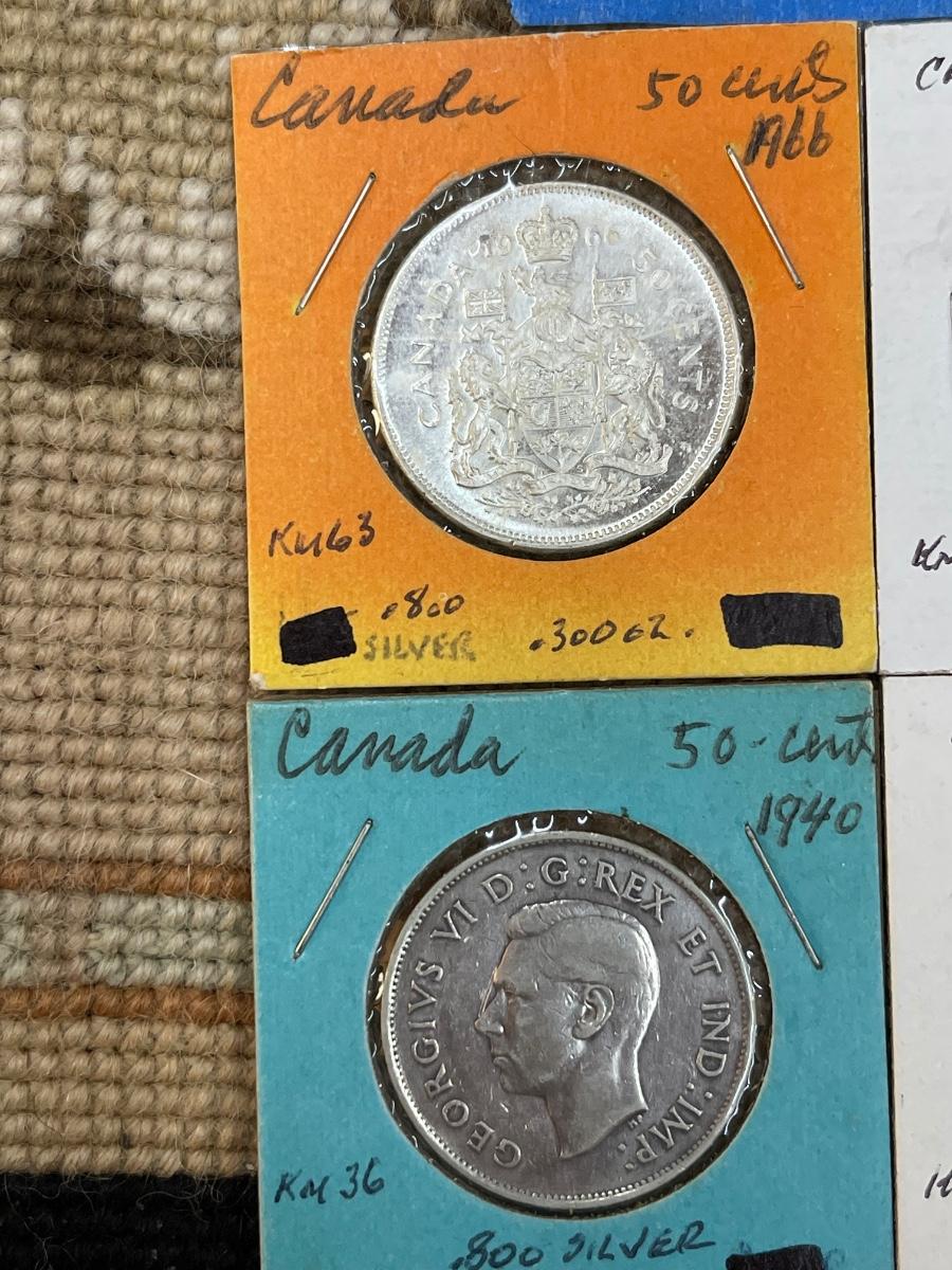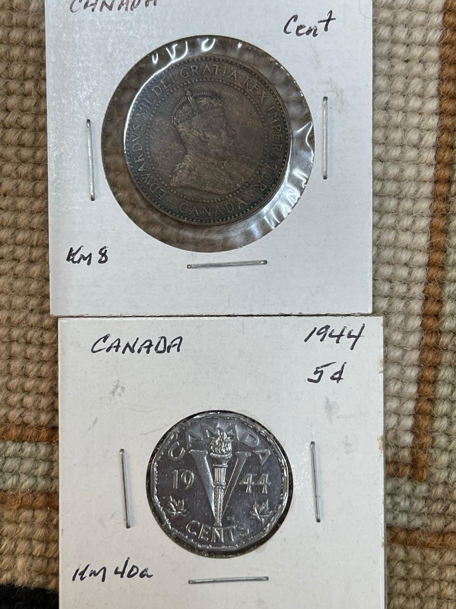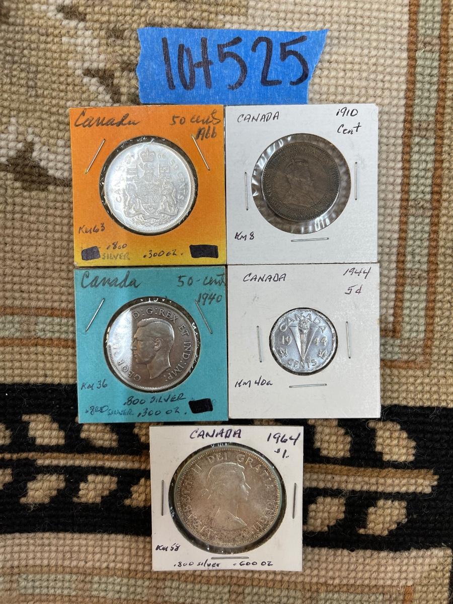 (5) vintage Canadian coins, - 1966 50 cents, 1910 1 cents, 1940 50 cents, 1944 5 cents, 1964 $1.