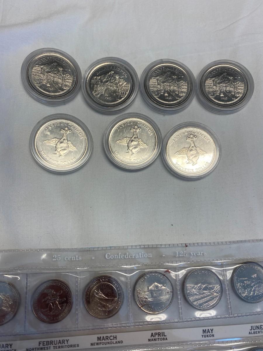 (4) 1985 Banff Alberta National Parks Centennial and (3) 1985 Jasper Canada 100th Anniversary National Parks of Canada. $10 ea., 8 coins in all