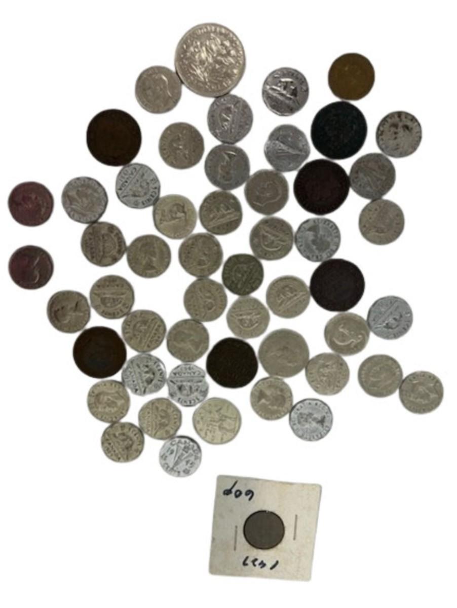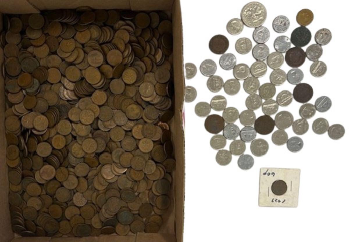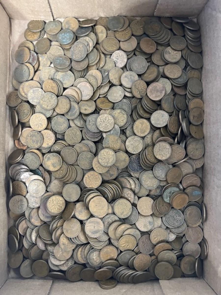 Includes pennies, nickels, and dimes. Total of 1000+ coins. [GL]