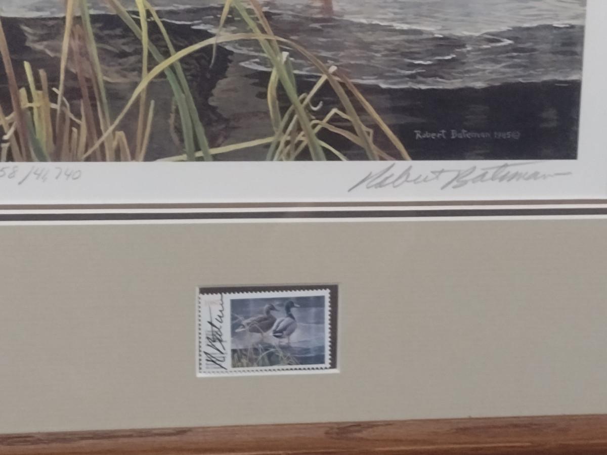 Canadian Duck Stamp and Print by Robert Bateman- Double Signed and Numbered- Framed Under Glass- Approx 17" x 15"
