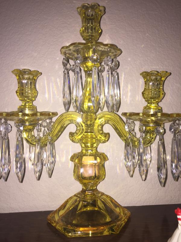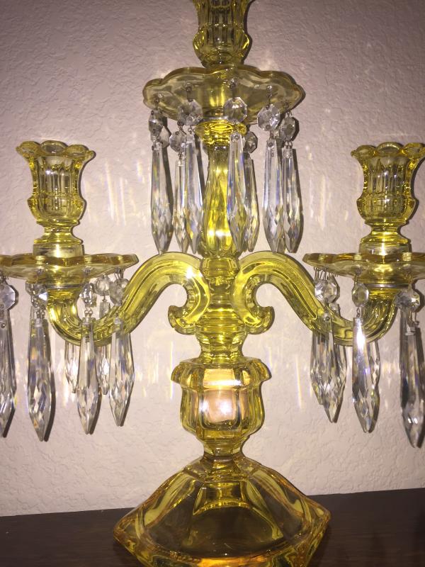 Hiesley Canary Yellow Sarah Old Williamsburg 3 Light Candelabra