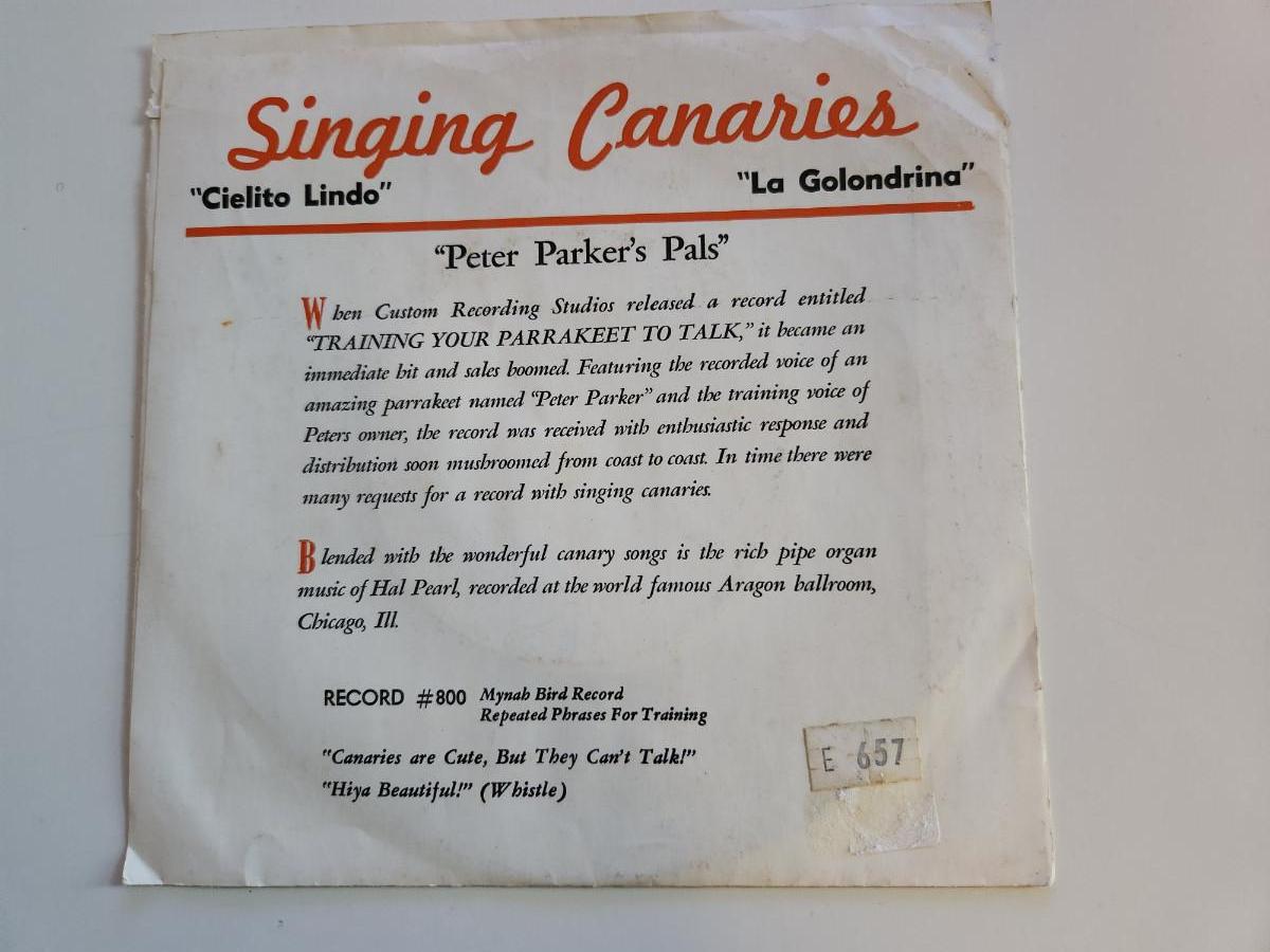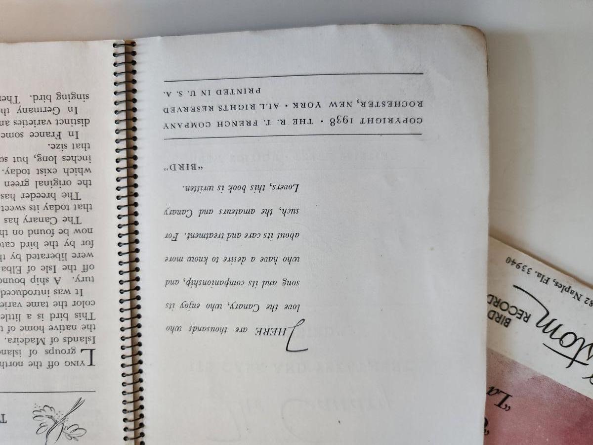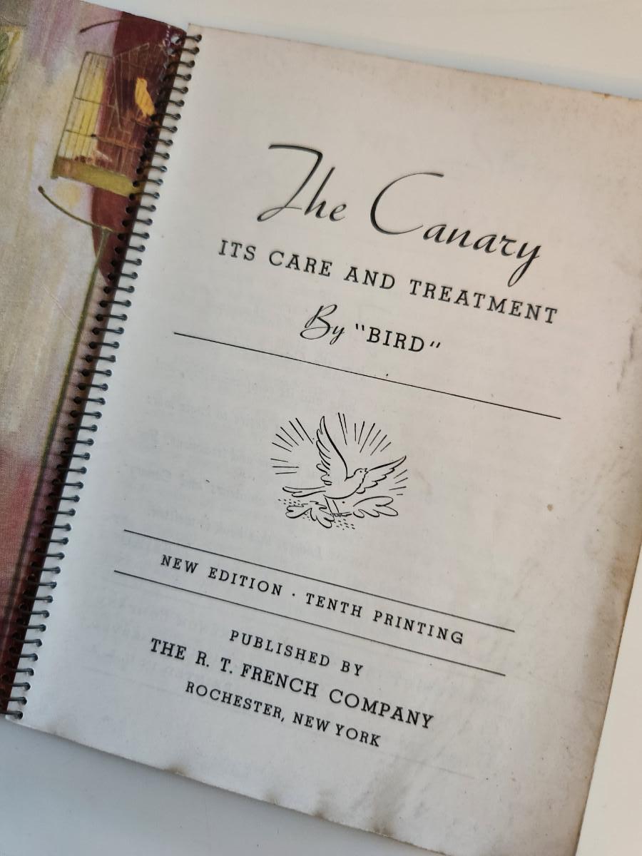 This auction lot is for a Canary Book & Record. This odd little grouping is quite the vintage find. The wirebound book of 72 pages includes raising and care information plus lots of color pictures. The record says it will help to get your bird singing and happy - along with some spiffy organ music.