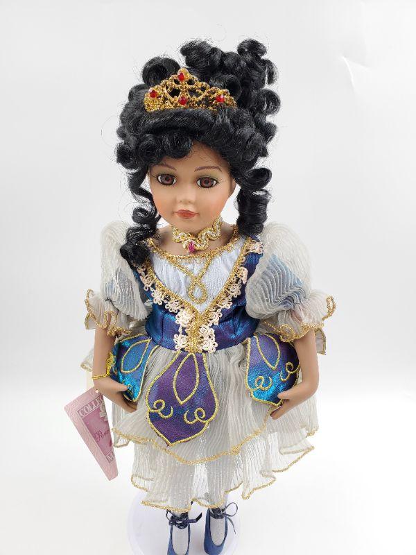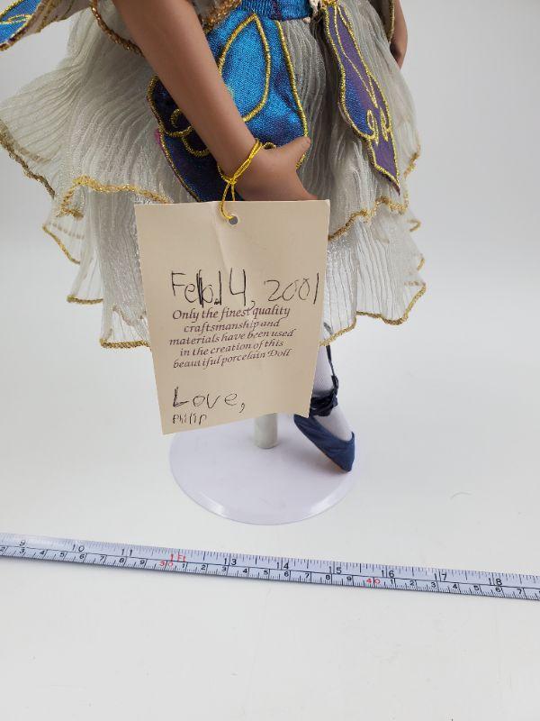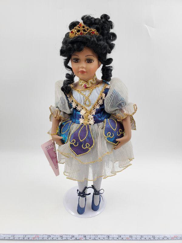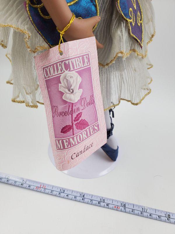 Stunning dancing ballerina, 16in porcelain doll. "Candace" tag is attached but has been written on. Good condition otherwise