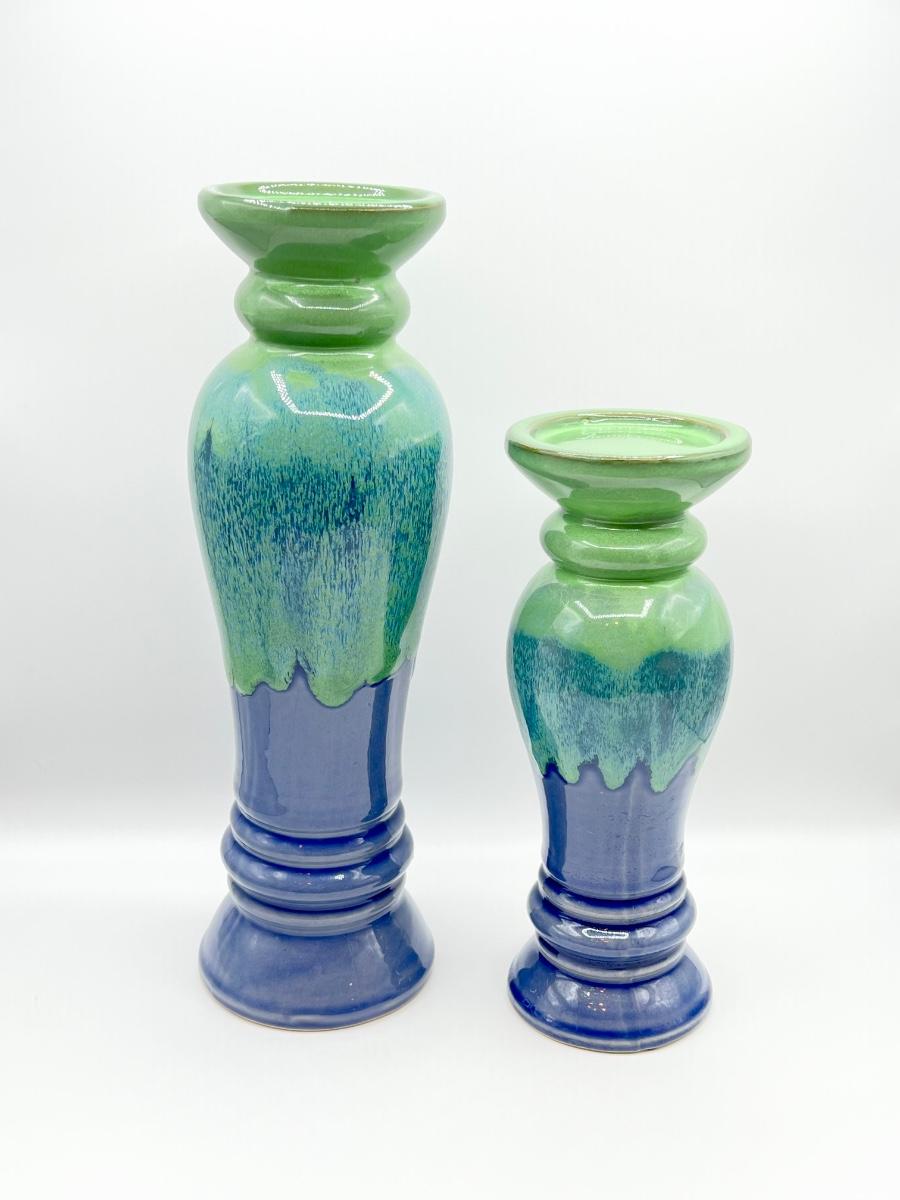 THREE HANDS CORP ~ Pair (2) Glazed Ceramic Candle Holders